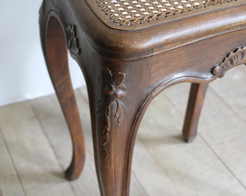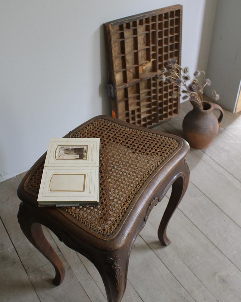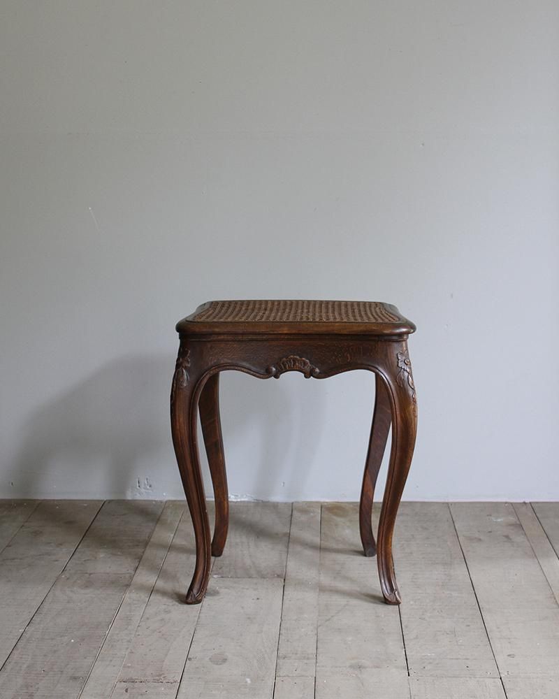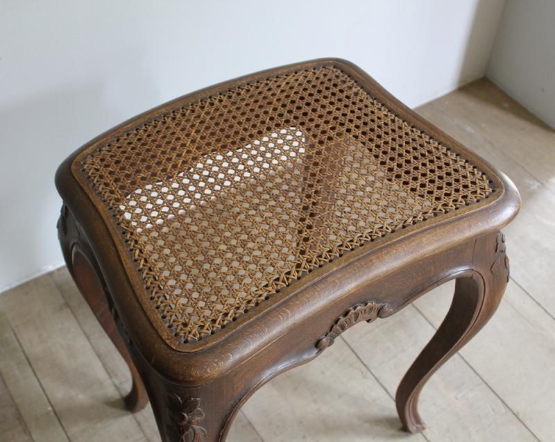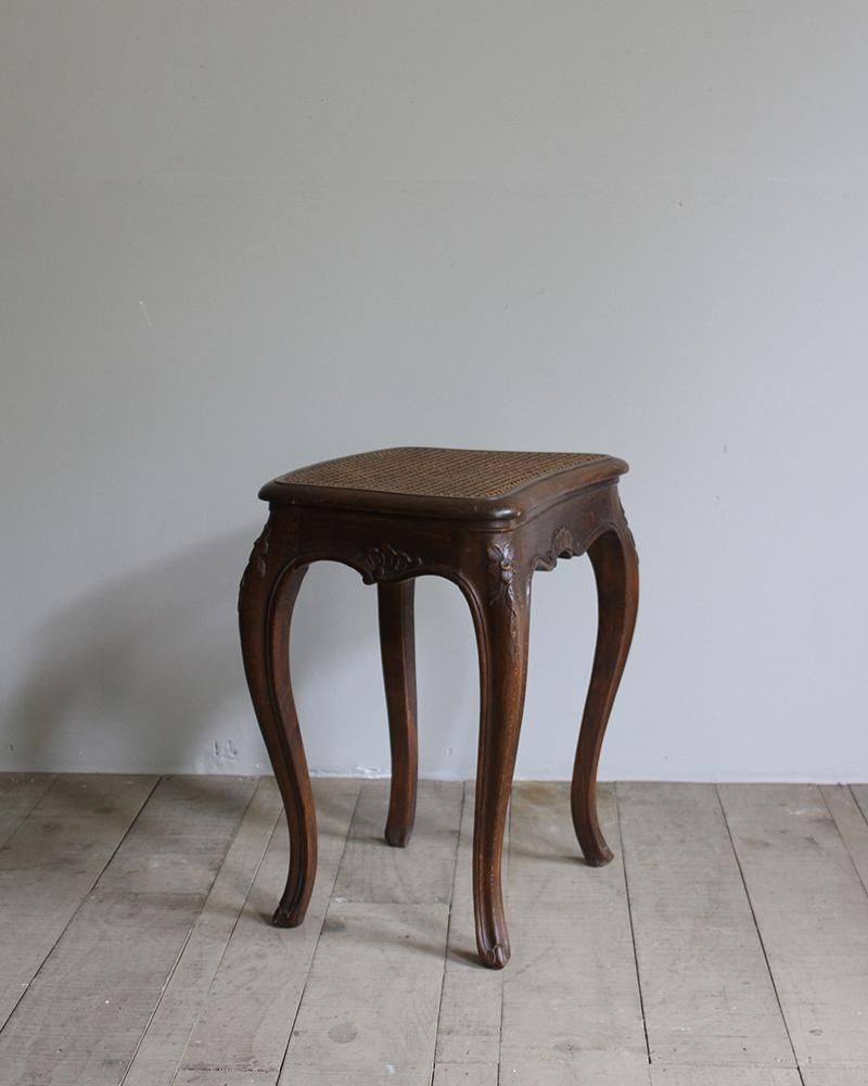 From : France 経年変化による、木の風合いがどこか懐かしさを感じ させてくれるスツールです。 座面はラタンシートとなっており、クラシカルで温かみのある 雰囲気を醸し出しております。 優美な曲線で型取られた、フランスらしいデザインのスツールです。 座面位置が高いので、サイドテーブルとしてもお勧めです。