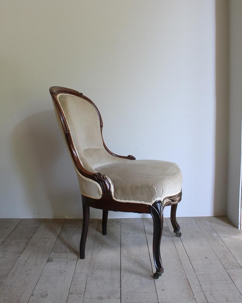 From : France 低めの座面が特徴的なナーシングチェア。 ナーシングとは、女性が授乳しやすいように座面が 低くなっているチェアです。 落ち着いたベージュカラーのファブリックが、柔らかな 印象を与えてくれながらもダークブラウンのフレームが 空間を引き締めてくれます。 ボリューム感のあるチェアなので、リビングでの リラックスチェアとしてもお勧めです。