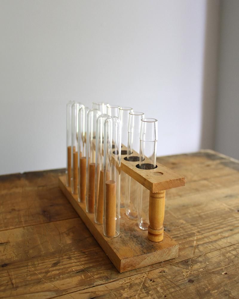 From : France アンティークの試験管です。 シンプルながらも、雰囲気のある試験管。 スパイスを入れたり、一輪挿しとしてディスプレイしたりと インテリアをお楽しみいただけるアイテムです。