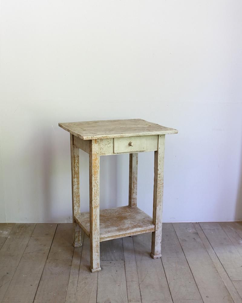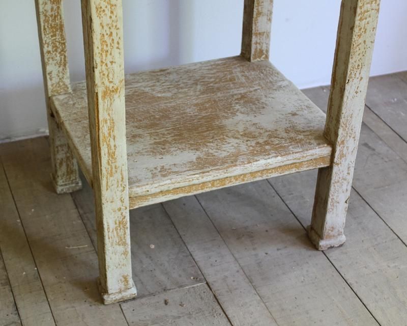 From : France シャビーな雰囲気が魅力的なサイドテーブル グレーがかったペイント剥がれの雰囲気は アンティークならではの表情です。 シンプルなデザインなので甘くなりすぎず、空間に 取り入れやすいサイドテーブルです。