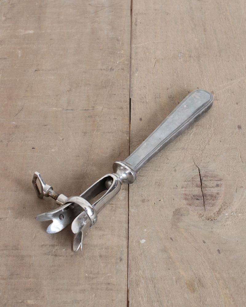 From : France お肉などを食材を挟むための カトラリーアイテム 日本ではあまり馴染みがありませんが 独特なフォルムがディスプレイ アイテムとして目を惹きます。 くすみや黒ずみなどがお気になる方は、シルバー専用の クリーニング剤などで磨いていただくのもお勧めです。