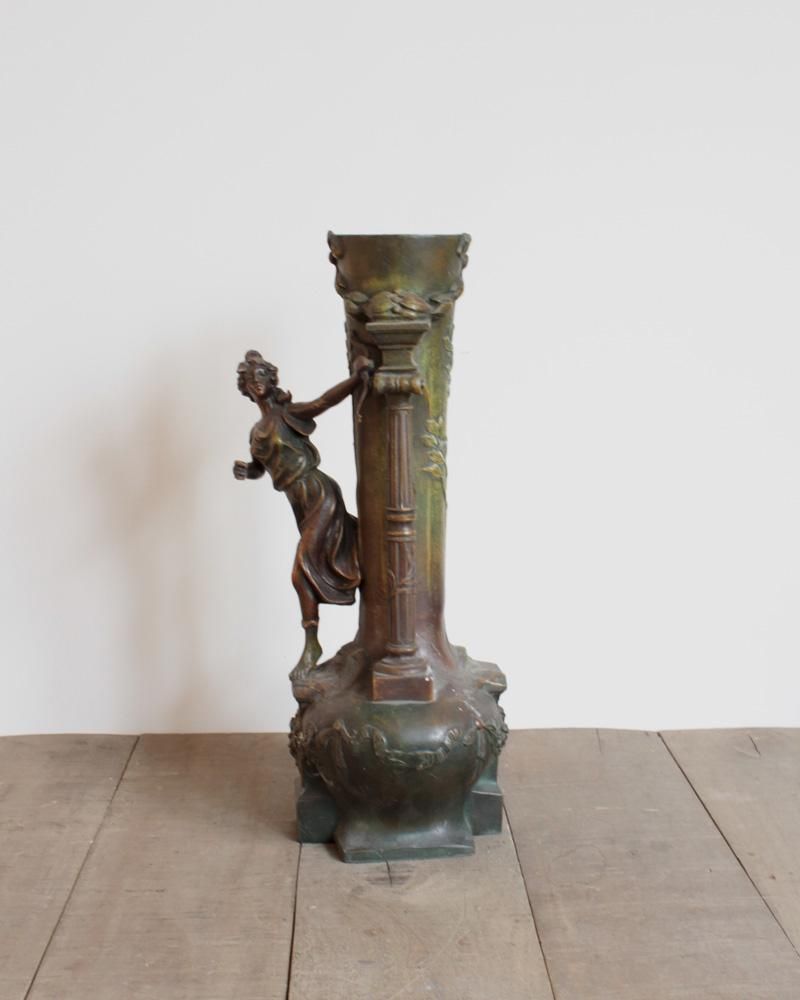 From : France 華やかな宮殿で戯れる男女がそれぞれに 描かれたフラワーベース。 生命力溢れる草花が堂々たる佇まいのピラーに 絡まって描かれており、楽園を連想させるような 装飾が施されております。 素材はブロンズ(内部はピューター)でどっしり とした重量感がございます。 ハイカルチャーなインテリアにお勧めです。