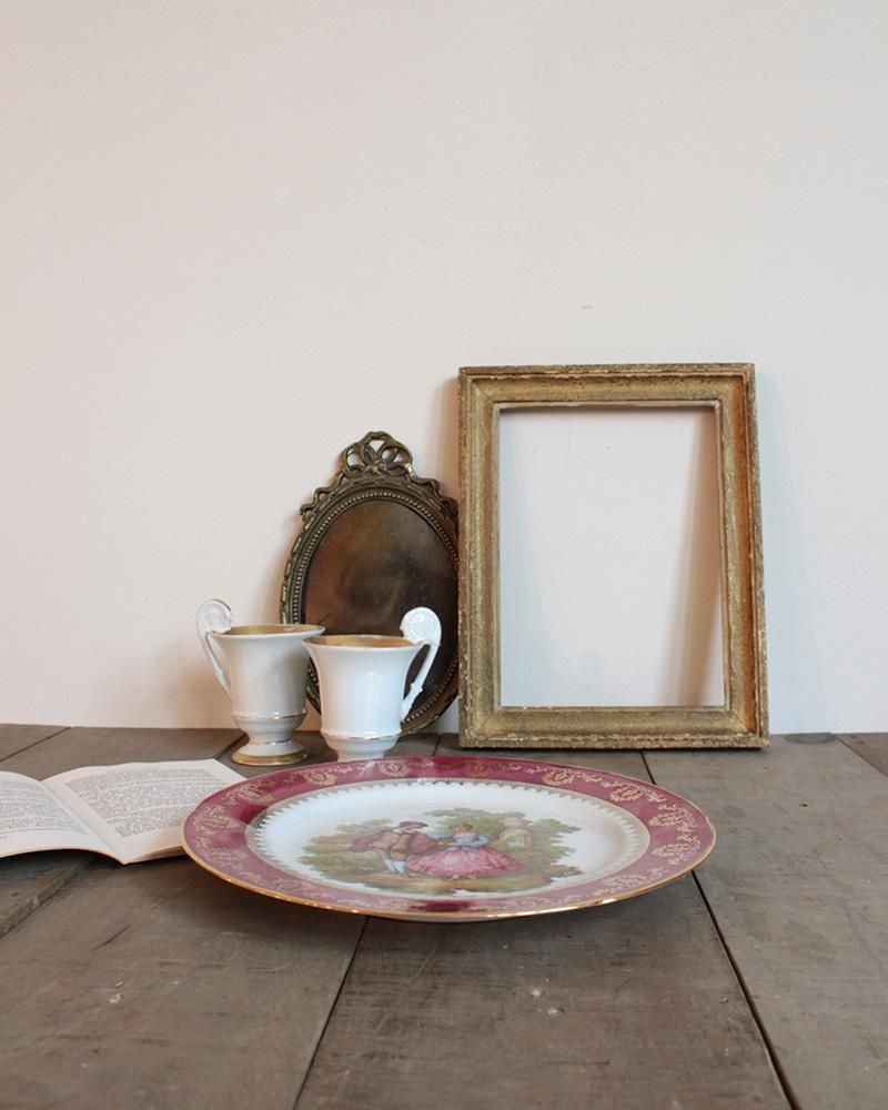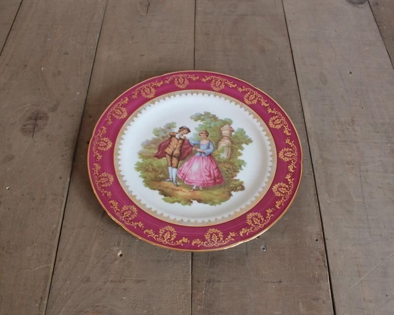 散歩を楽しむ中世の男女が描かれた、とても優美なプレート。