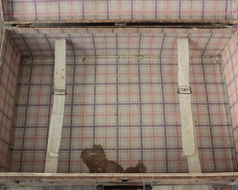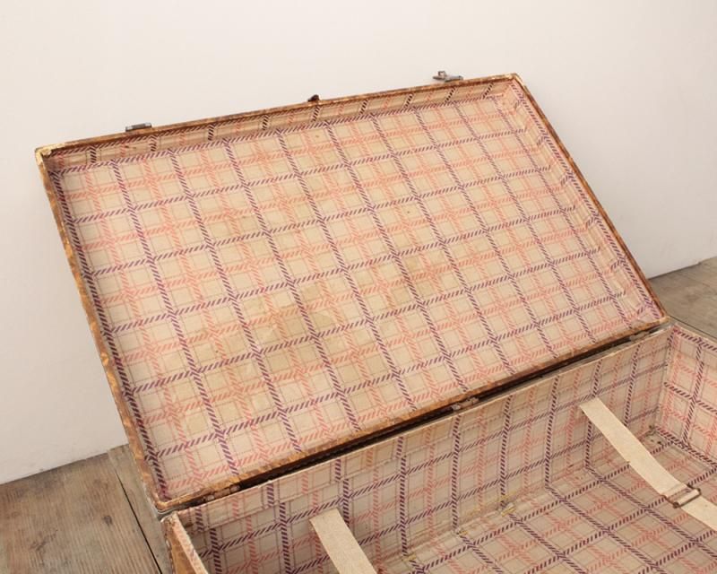 From : France レザーのような渋い雰囲気を漂わせたトランク。 オブジェとして飾りながら、小物の収納などにも お使いいただけます。蓋を開いた状態で雑誌などを 収納すのるもいいですね。 アンティークならではの味のある風合いが馴染みやすい 心地よさを感じさせます。