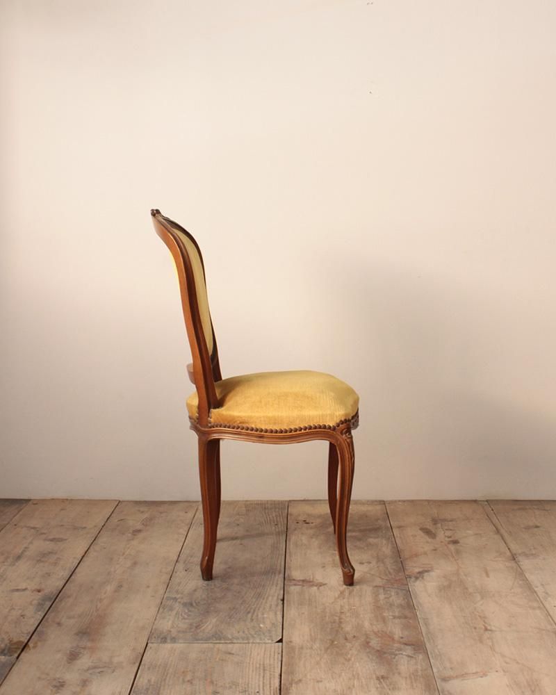 From : France 軽やかで控えめな印象のイエローカラーのファブリックチェア。 見るだけでフランスを思わせる、美しい猫脚と優しい色合い 生地が印象的です。 こちらのチェアは複数在庫ががございます。 商品はアンティーク品のため、お写真では伝わり難い 色褪せや小傷やくすみ、色むらなどがございます。 追加のお写真をご希望の方はお気軽にお問合せくださいませ。 残り在庫:1点