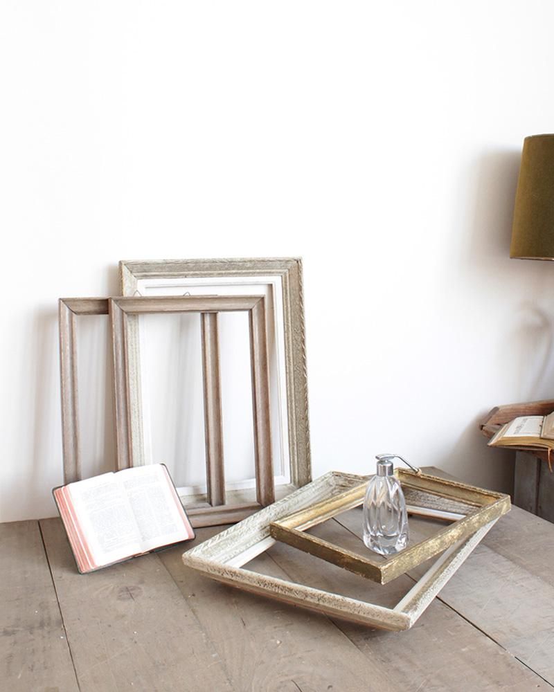 From : France ガーリーな淡いグレーの色合いが目を惹く額縁です。 程よいサイズ感と2トーンが配色が愛らしい逸品。 オブジェとしてそのままディスプレイいただくだけで、 程よい存在感でお部屋にアンティーク感を漂わせてくれます。 またミラーを取り付けたり、背板をつけてフォトフレームにしたりなど、 用途に合わせて加工していただけます。 *別途料金にてミラーや額縁の加工も承っております。 お気軽にご相談くださいませ。