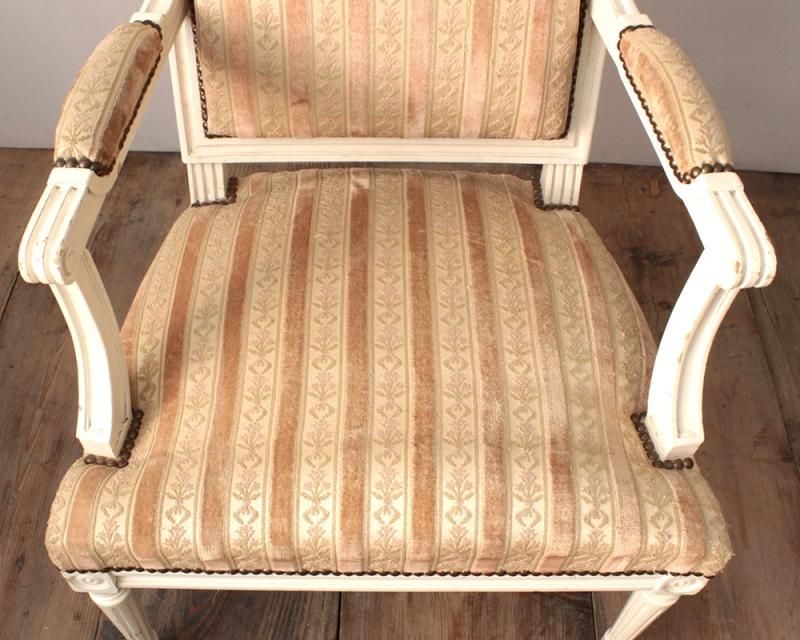 From : France 気品高い風貌と可愛らしい印象の 花柄のストライプ模様のファブリックが バランスのとれたアームチェア。 ホワイトペイントのフレームにパステルカラーの 生地の組み合わせが、女性らしい明るく可愛い 空間を演出してくれます。 生地の状態につきましてアンティーク品のため、 所々に若干のシミ汚れや色褪せ、色むら、解れ箇所 などがある場合がございます。 予めご了承くださいませ。