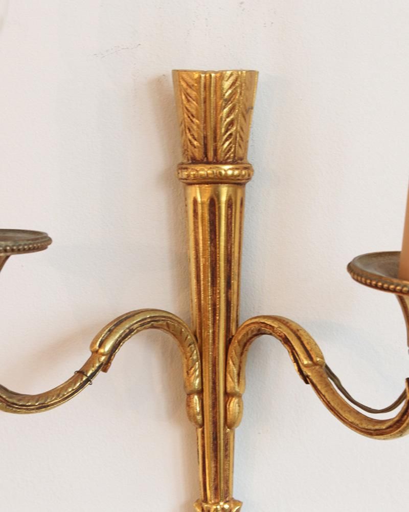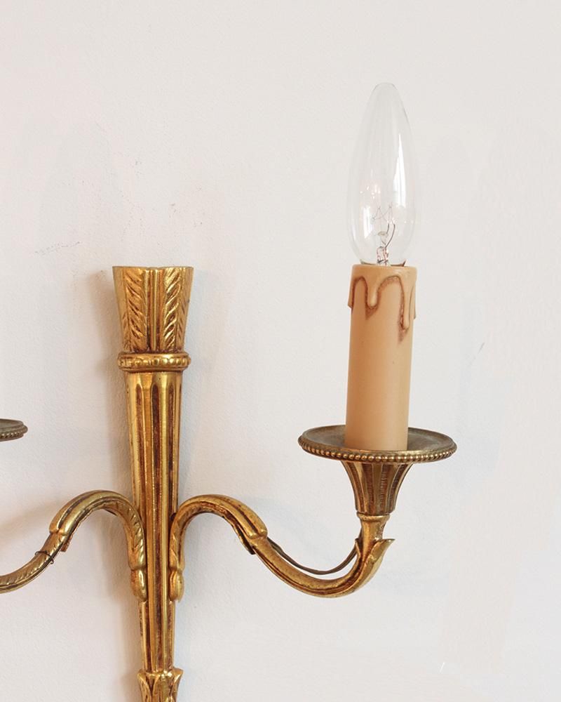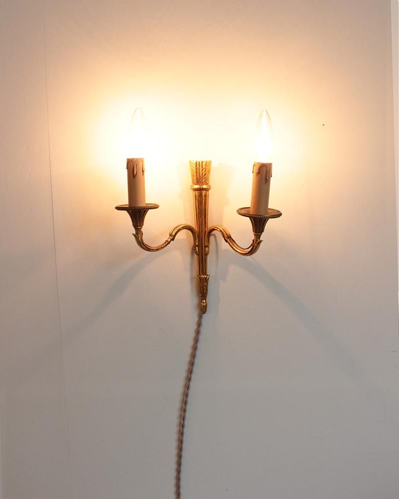 From : France エレガントな印象を与えるゴールドカラーのブラケットランプ。 煌びやかな装飾などはございませんが、さりげなく 目を惹く存在感。 日常とは少し違ったゴージャスな雰囲気を味わいたい時などに 壁に掛けるだけで気品溢れるお部屋を演出してくれそうです。 リビングや寝室、アトリエなどにもお勧めです。 別途料金にてコード長さの変更も承っております。 お気軽にお申し付けくださいませ。