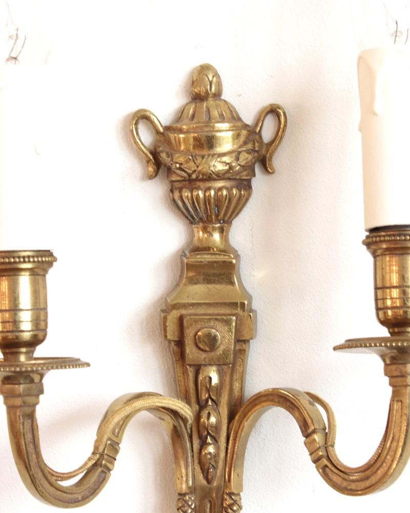 From : France 真鍮製のウォールランプ デコラティブなデザインのベースとトップの ポットがモチーフの装飾が目を惹きます。 また、時間をかけて変化した真鍮特有の風合いは ゴージャスすぎない落ち着いた輝きがあります。 別途料金にてコード長さの変更も承っております。 アンティーク品のため、専門業者による配線交換を ご希望の場合は別途有料にて承っております。 ご希望の方はご注文時に備考欄に交換希望の旨をご記入くださいませ。