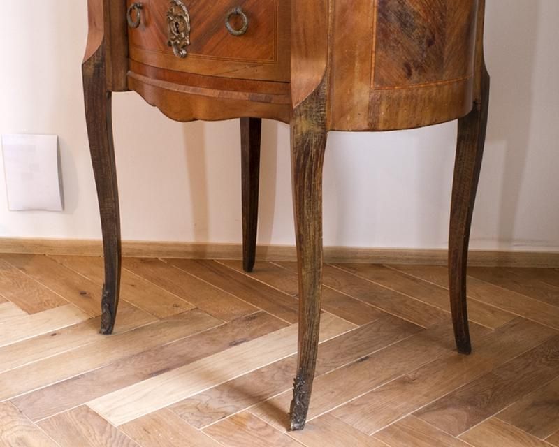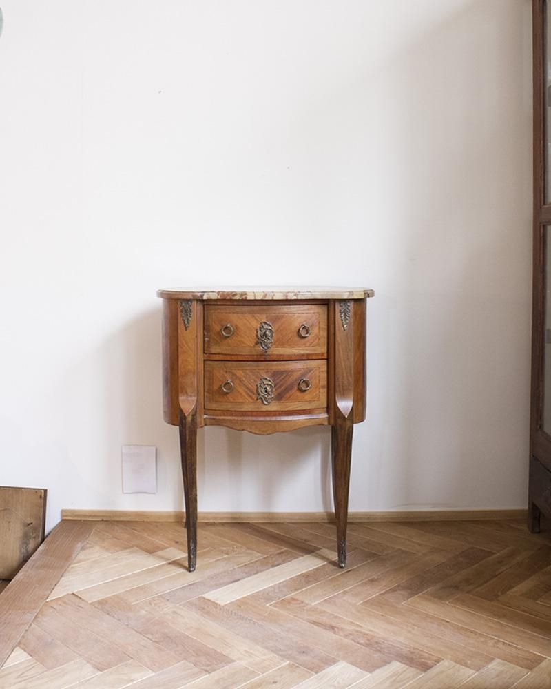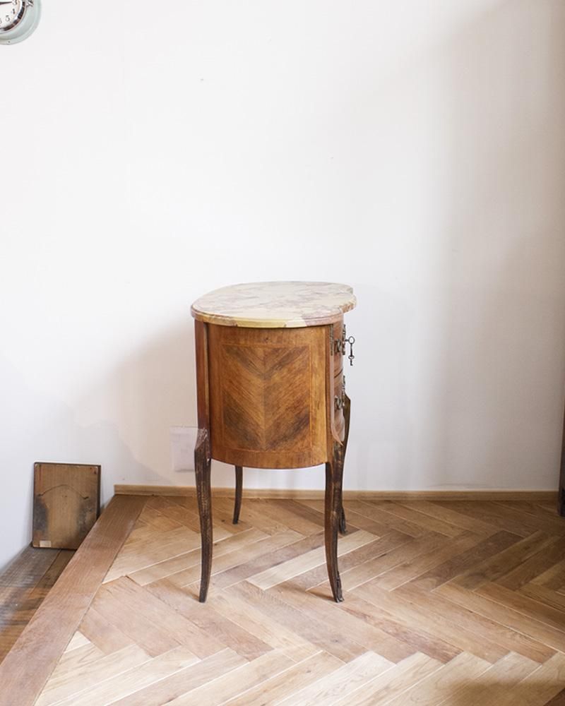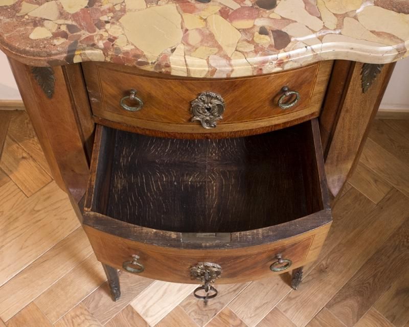 天板には非常に珍しく美しいマーブル模様の大理石が敷かれ、