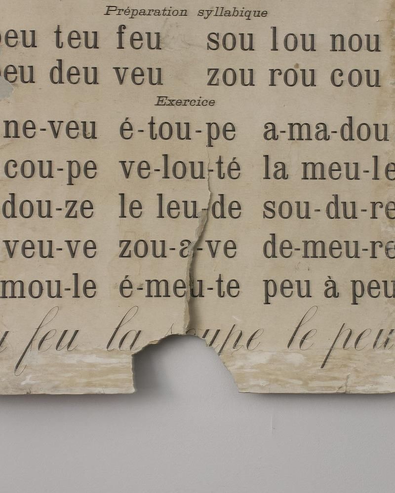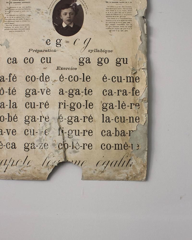 From : France フランス語の音節が書かれたポスター おそらく、子供の学習用に使われていた ポスターかと思います。 両面印刷となっており、アンティークの風合い たっぷりなポスターです。 日焼け・シミ汚れ・破れ等ございます。 商品はアンティーク品のため、お写真では伝わり難い 色褪せや小傷やくすみ、色むらなどがございます。 追加のお写真をご希望の方はお気軽にお問合せくださいませ