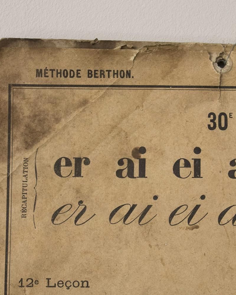 From : France フランス語の学習用のポスター 両面印刷となっており、アンティークならではの 色褪せなどの風合いがとても雰囲気あるポスターです 日焼け・シミ汚れ・破れ等ございます。