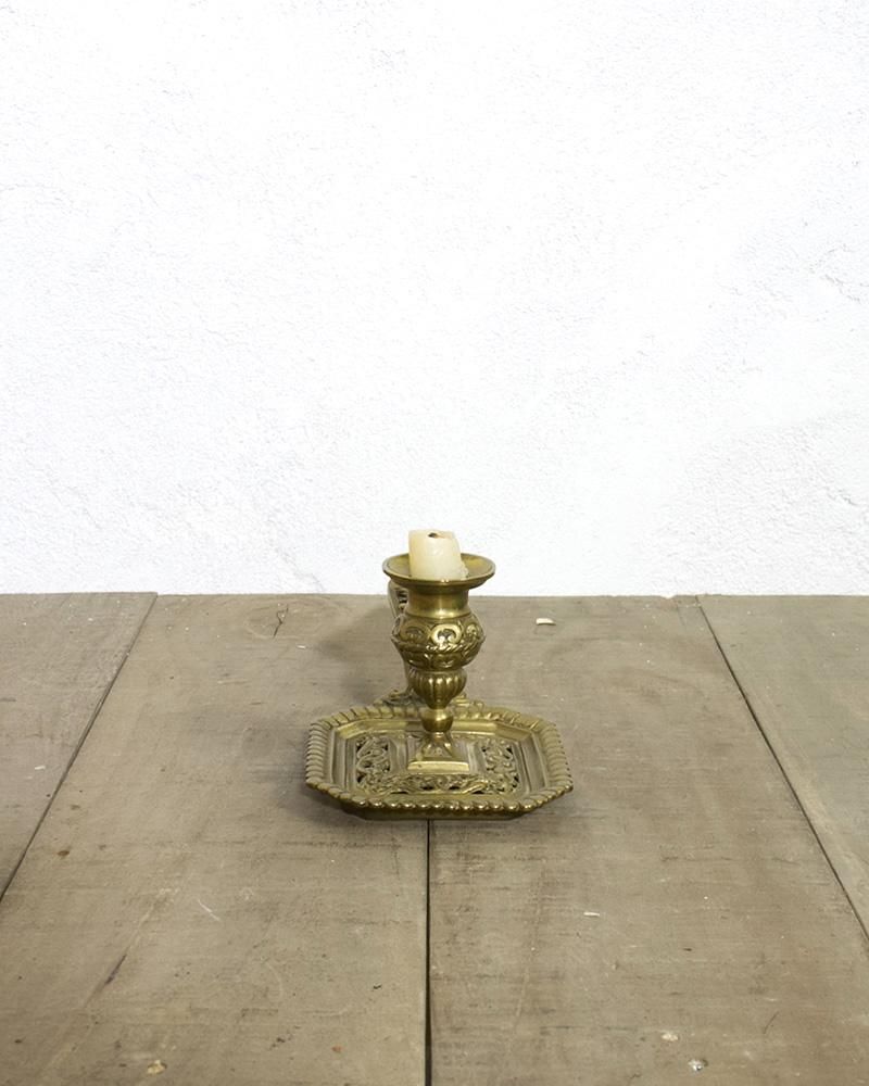 From : France 真鍮製のキャンドルホルダー 透かし彫りの繊細な彫刻が細部に至るまで 施されており、うっとりするほど美しく 経年変化による真鍮特有の鈍いゴールドの 輝きがとても趣を感じさせてくれます。 ホルダー部分に刺さっている蝋燭はご希望に よって除いてお渡しいたします。 お気軽にお申し付けください。