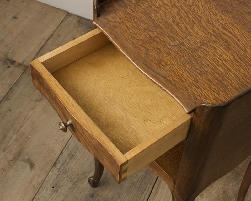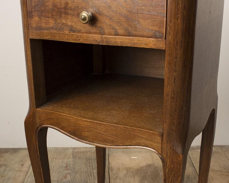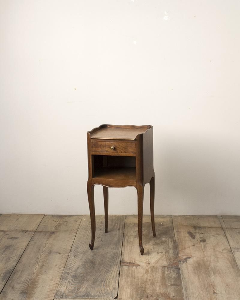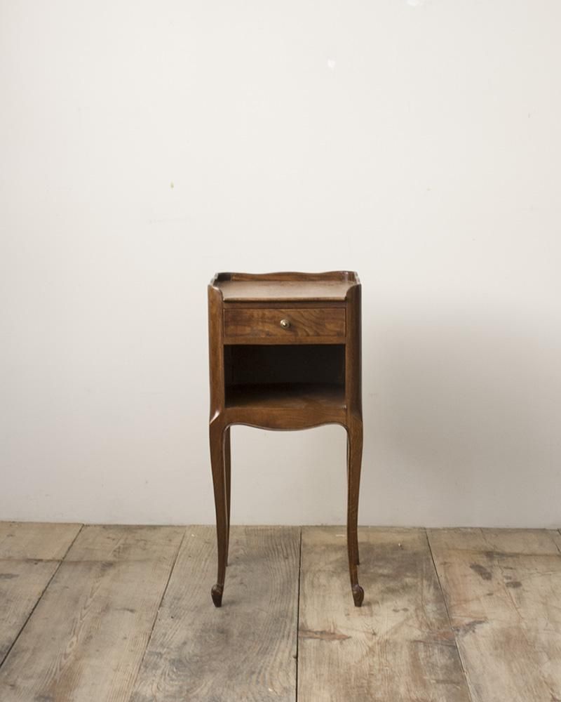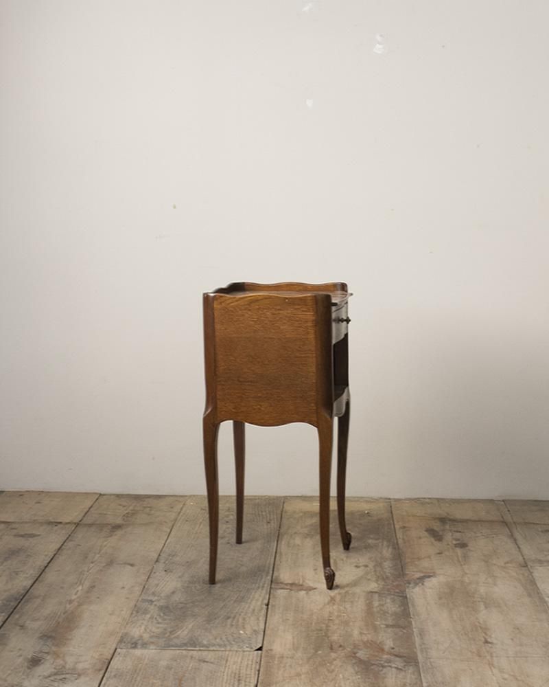 From : France シンプルなデザインのナイトテーブル サーペンタイン(波型)の曲線で縁取られた シルエットに、華奢な脚が可愛らしく フランスらしいデザインのナイトテーブルです。 アンティークならではの木の質感は柔らかな 雰囲気を醸しだしており、温かみのある 空間を演出してくれます。