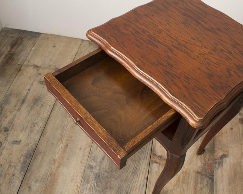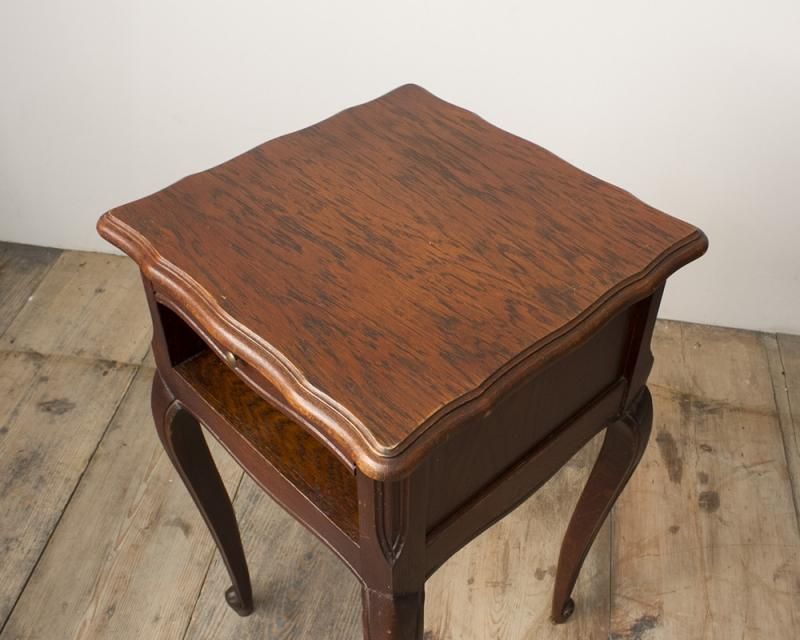 From : France シンプルなデザインのナイトテーブル シンプルながらも、サーペンタイン(波型)の 曲線で縁取られたシルエットや、猫脚のデザインなど フランスらしいデザインが魅力的です。 ダークブラウンのカラーが重厚で 落ち着きのある雰囲気を醸し出しています。 商品はアンティーク品のため、お写真では伝わり 難い色褪せや小傷などがございます。 追加のお写真をご希望の方はお気軽にお問合せくださいませ。