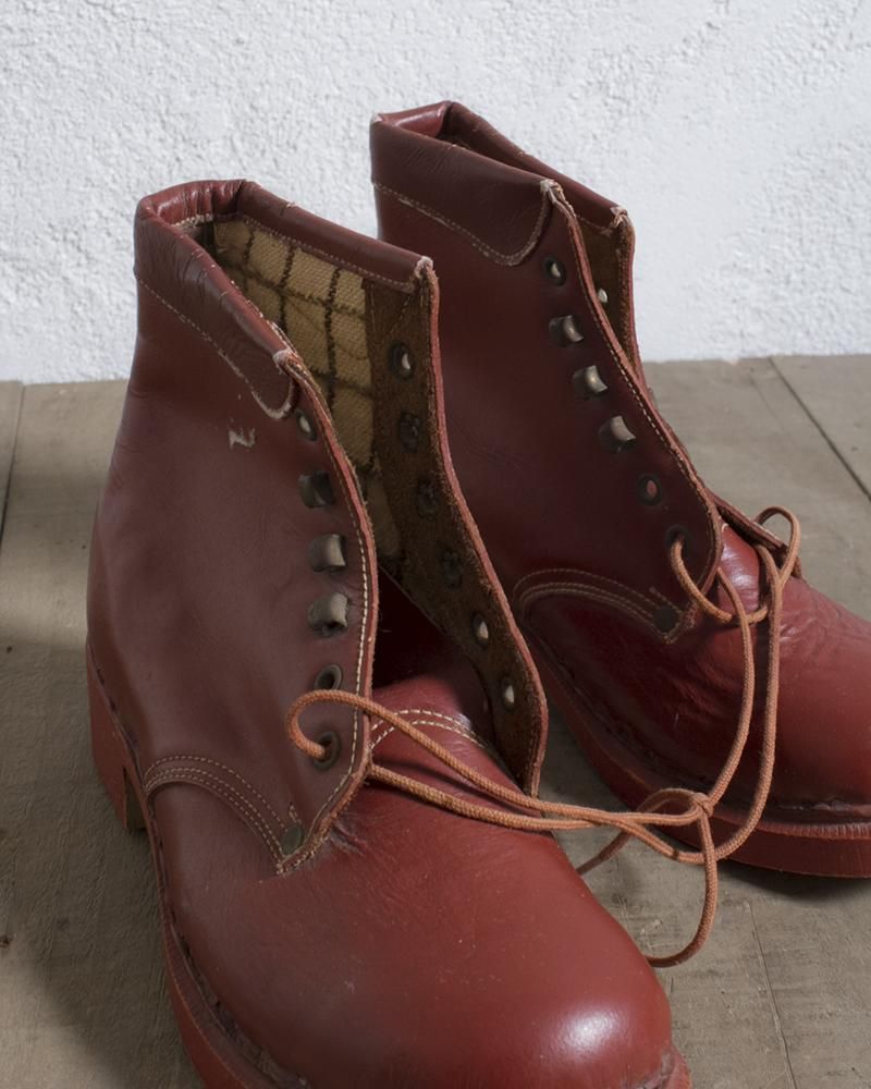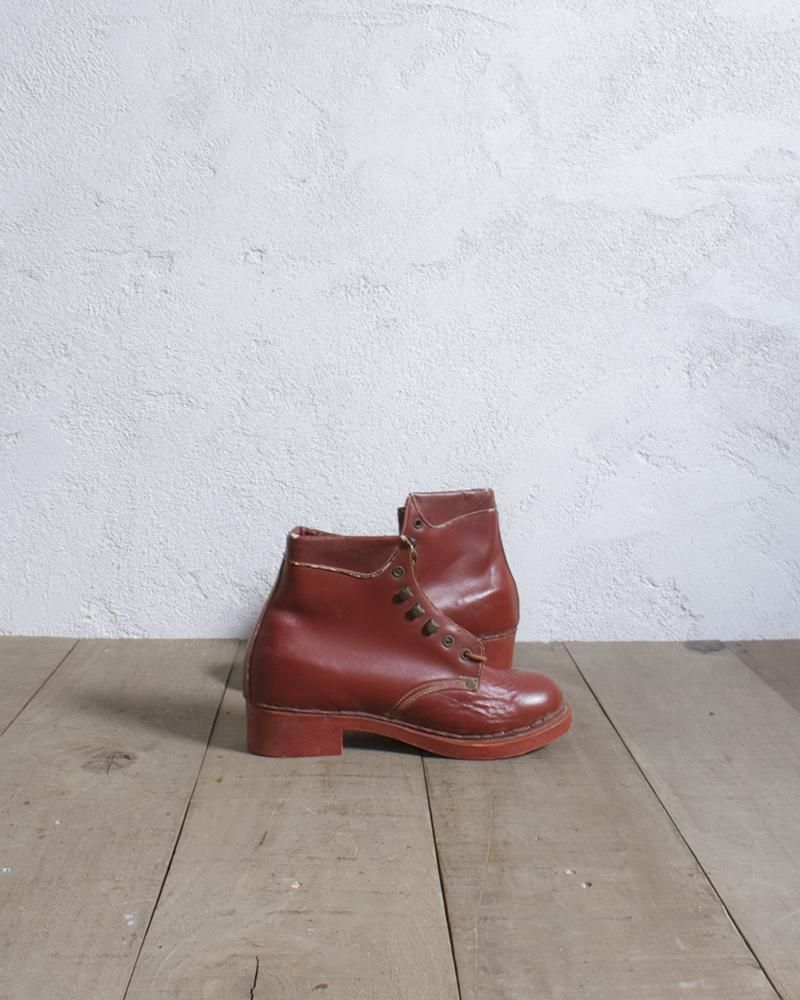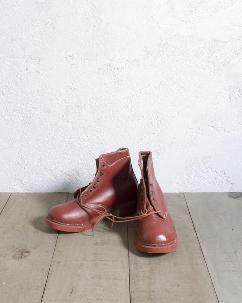 From : France ワインレッドのカラーが目を惹く レザーのレースアップシューズです。 6ホールタイプで靴底の素材は木製となっており 経年変化による革や木の風合いが魅力的で ディスプレイしているだけで雰囲気があります。 紐は1本のみ付属しております。 所々レザー剥げや傷、型崩れなどございます。 予めご了承くださいませ。 ソール全長 : 24cm 底幅 : 9cm