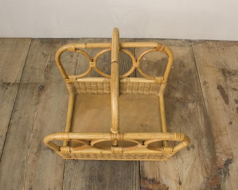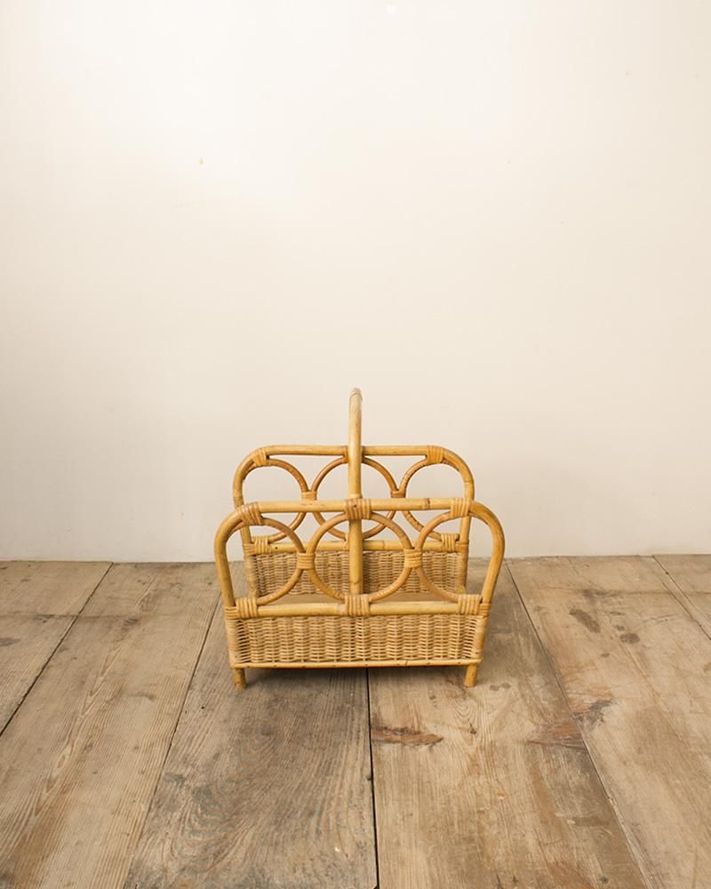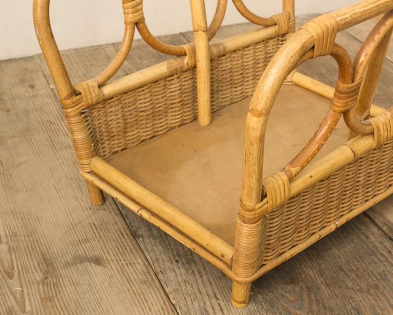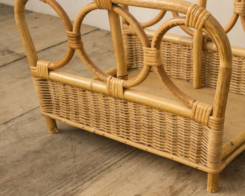 From : France ラタン素材で出来たマガジンラック 自然素材のナチュラルな風合いが柔らかく レトロで懐かしさを感じさせてくれるデザインが よりいっそう温かみのある雰囲気を醸し出しています。 新聞や雑誌を立てたり、レコードを立てたり または、スリッパやブランケットなどをまとめたり アイデア次第でディスプレイを楽しめます。