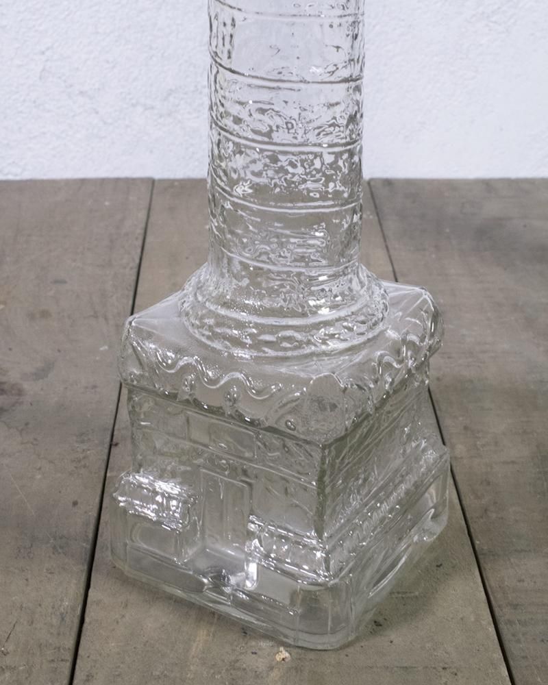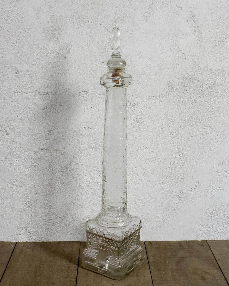 From : France 細部にわたり繊細なカッティングが 施されたガラスのオブジェ もともとはウィスキーボトルとして使われており 大きなサイズで珍しいデザインが目を惹きます 司祭様のデザインのキャップは取り外し可能で 水を入れたり、光を通すととても美しく幻想的な 影を演出してくれる存在感のあるオブジェです。