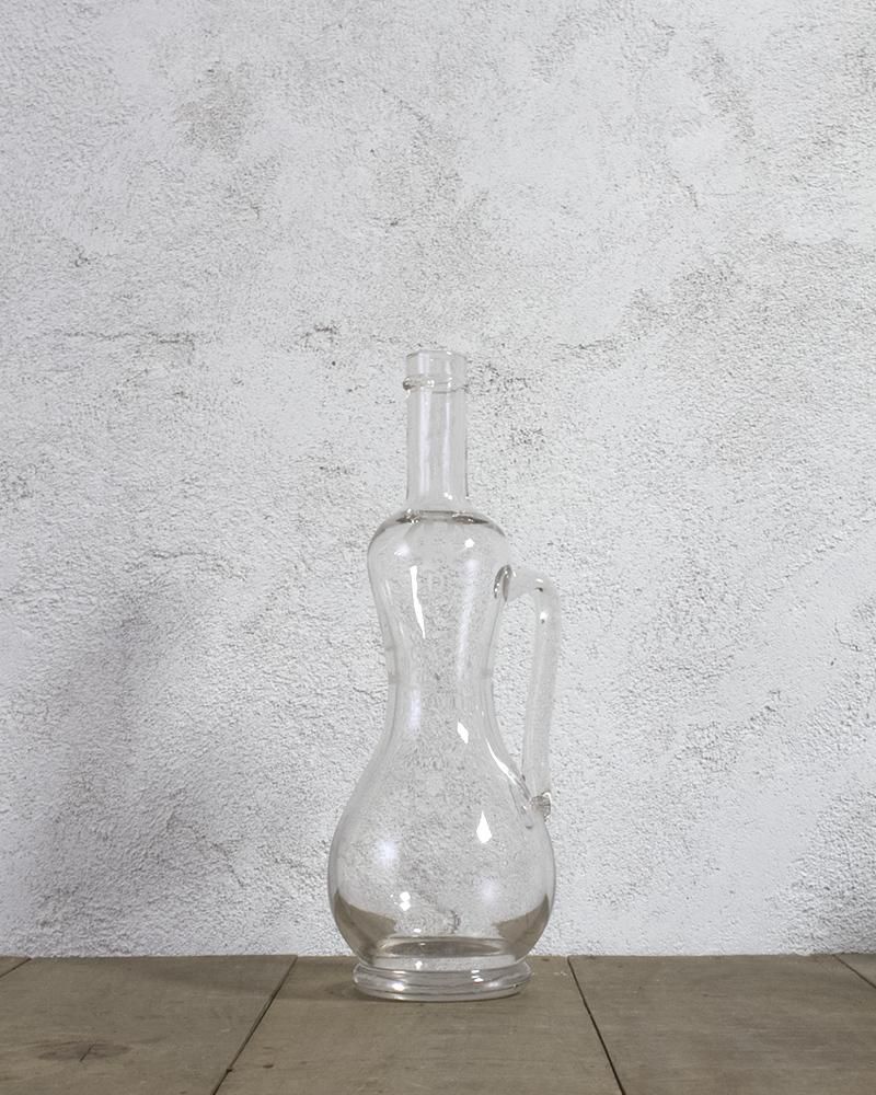 From : France 緩やかな曲線を描いたフォルムが魅力的な ガラスボトルです 取っ手もついていることから、もともと ピッチャーとして使われていたのかと思います そのままディスプレイしても、 フラワーベースとしてお花を活けてもお勧めです。 ガラス内側に経年使用による白濁 ガラス表面に細かな傷などがある場合がございます。 予めご了承くださいませ。