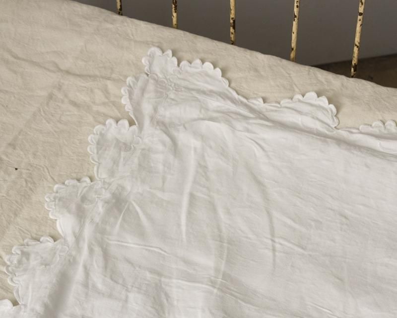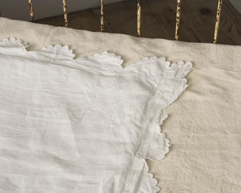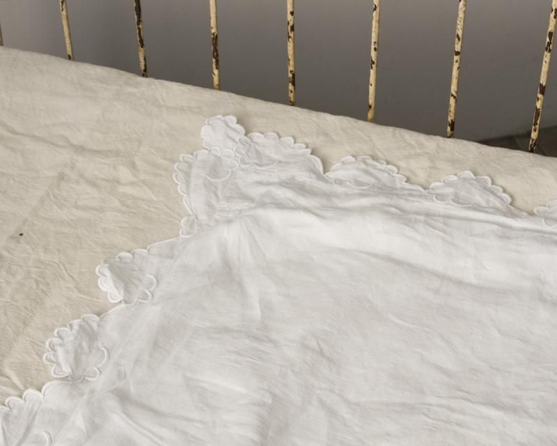 From : France 清潔感溢れるリネン生地のクッションカバー リネンのナチュラルな雰囲気のなかに 繊細で美しいイニシャルの刺繍に大胆なフリルの装飾が とても可愛らしいクッションカバーです。 中のクッションはW60×H60cm のものを使用しております。 中のクッションは付属いたしませんが、ご希望の方は 別途料金(2,000円)にてご注文お承りいたします。