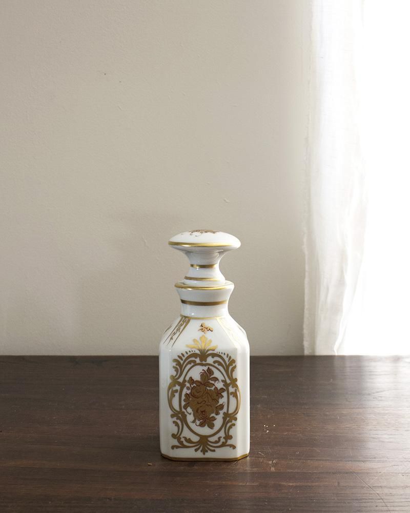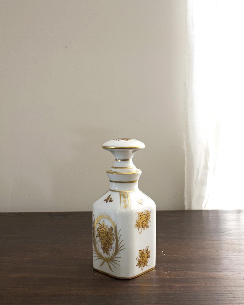 From : France 陶器ならではツヤのあるのホワイトカラーに陶器に ゴールドのペイントで描かれたエレガントな花模様が 目を惹くスパイスボトルです。 バラの花の絵柄やボトルのシルエットなど、シノワズリのデザインを 思い立たせるボトルで、上品で優美な印象を与えてくれます。