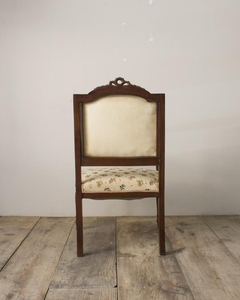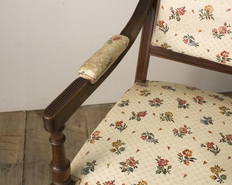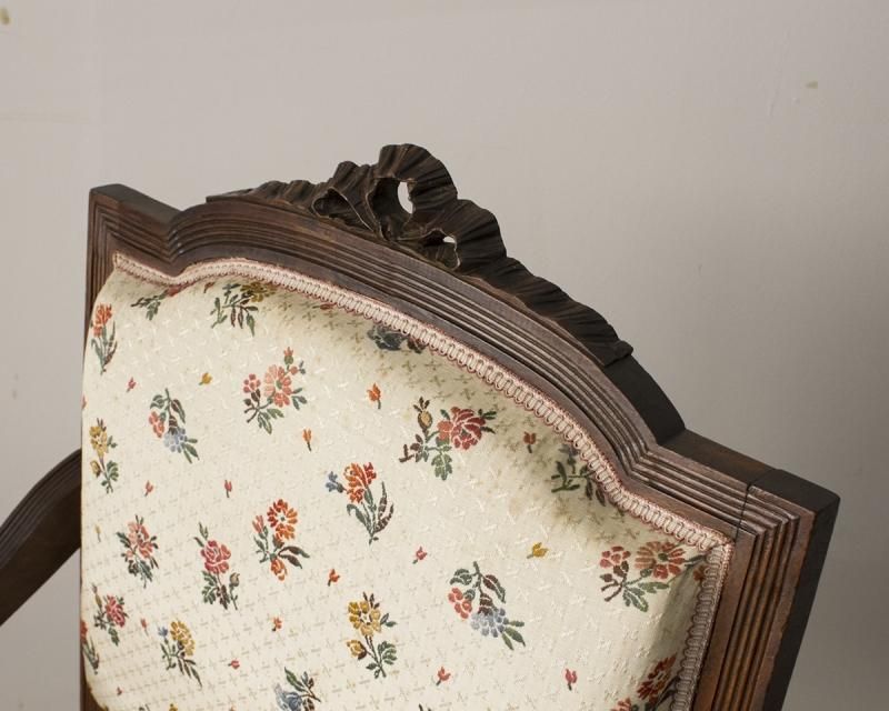 From : France 愛らしい花柄模様のファブリックが 印象的なアームチェア。 赤褐色に艶めいたフレームには高級感溢れる マホガニー材が使用されています。 気品溢れる上品な佇まいで大正ロマンを思わせる レトロなデザインながらも、どこか高貴な印象を 併せ持った魅力的な逸品です。 ファブリックの状態も良く、普段使いでご使用いただけます。