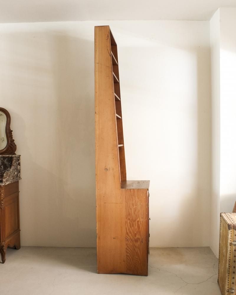 From : France シンプルながらもナチュラルな雰囲気が魅力的なカップボードです。 アンティークならではの経年変化による木の表情が 自然な温かみのある雰囲気を醸し出しております。 またスリムなシルエットで背が高く、シンプルなデザインながらも 希少なサイズ感が魅力的です。 一般のご家庭ではもちろん、店舗などのディスプレイ什器としても とてもお勧めなカップボードです。 床から天板までの高さ : 83cm