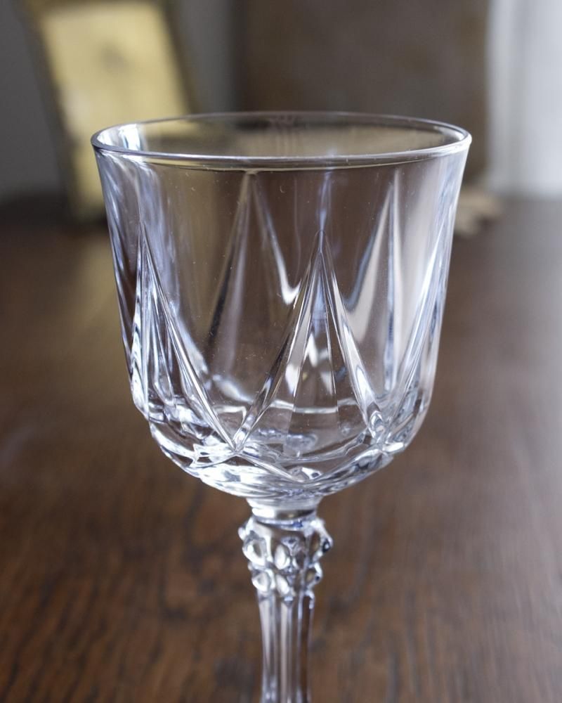 From : France 美しいカッティングが施されたワイングラス。 クリスタルガラスのような透明度の高い ガラスが使用され、光を透かすと美しく輝きます。 手に馴染みやすいすらっと伸びたステムには、 6面のパネルカットが施されています。 商品は複数在庫がございます。 ご注文時に必要脚数を設定してご注文くださいませ。 商品はアンティーク品のため使用感やくすみや小傷が ある場合がございます。予めご了承くださいませ。
