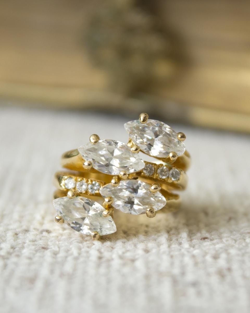 ダイヤのようなストーンが大胆にもはめ込まれたヴィンテージリング