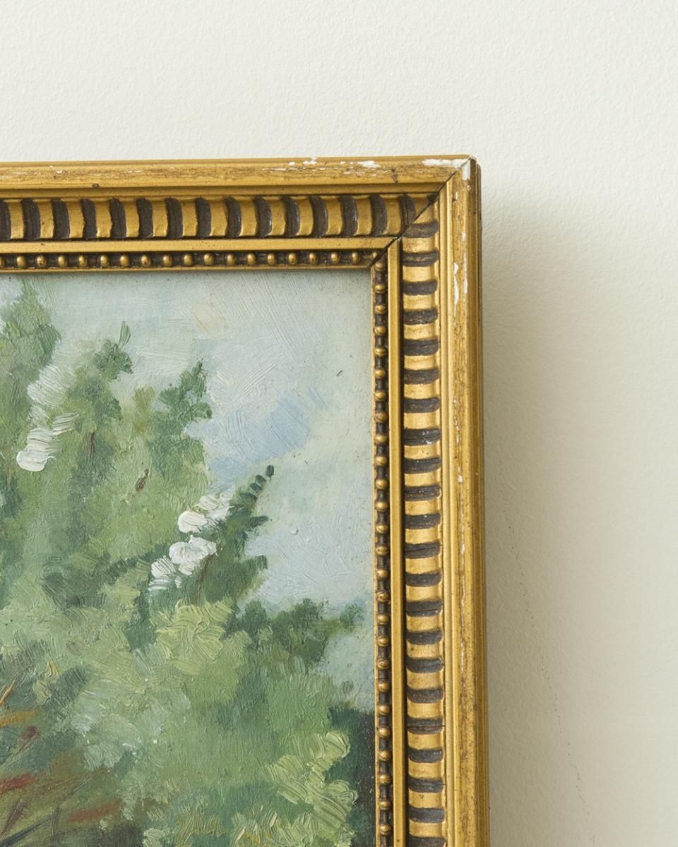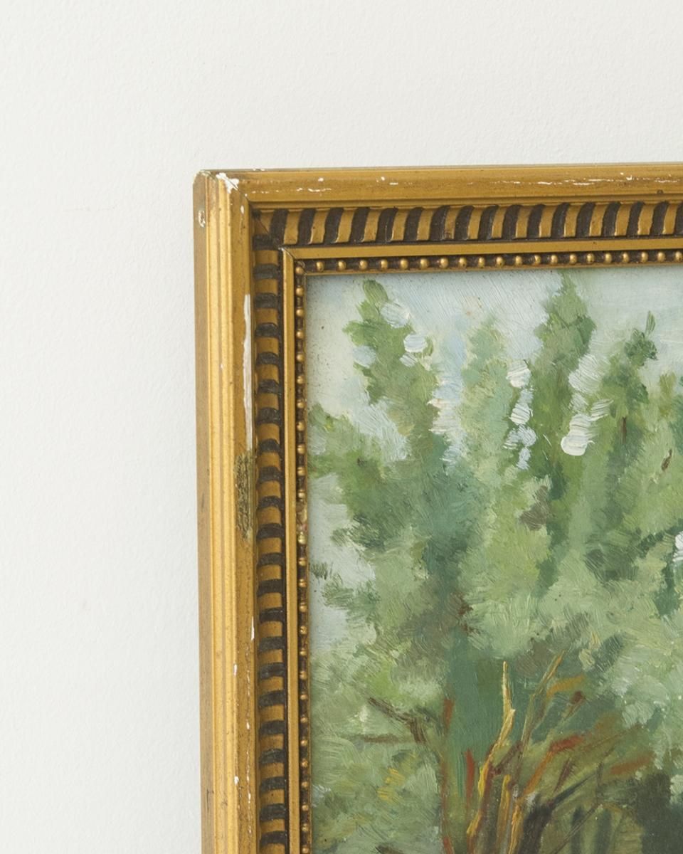 From : France フランスで見つけた素敵な絵画 印象派を思わせる全体的にぼやけた 風景が描かれた逸品。 全体的に霧がかった、決して晴れやかではない しっとりとした印象を伺える作品かと思われます。 小さいサイズなので、玄関先や レストルームなどの限られた スペースに飾っていただくのがお勧めです。 商品はアンティーク品のため、お写真では伝わり 難い色褪せや小傷などがございます。 追加のお写真をご希望の方はお気軽に お問合せくださいませ。