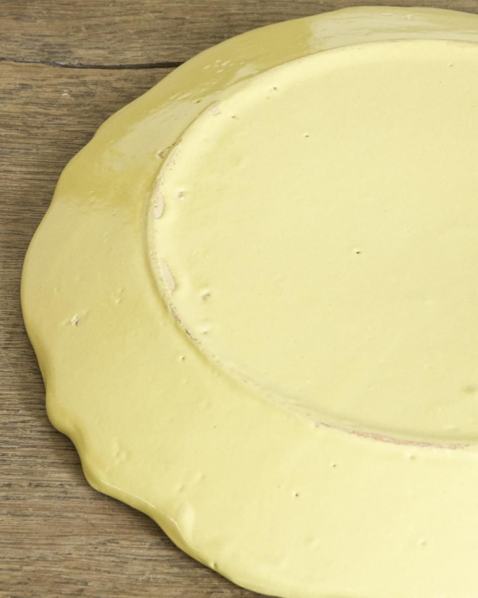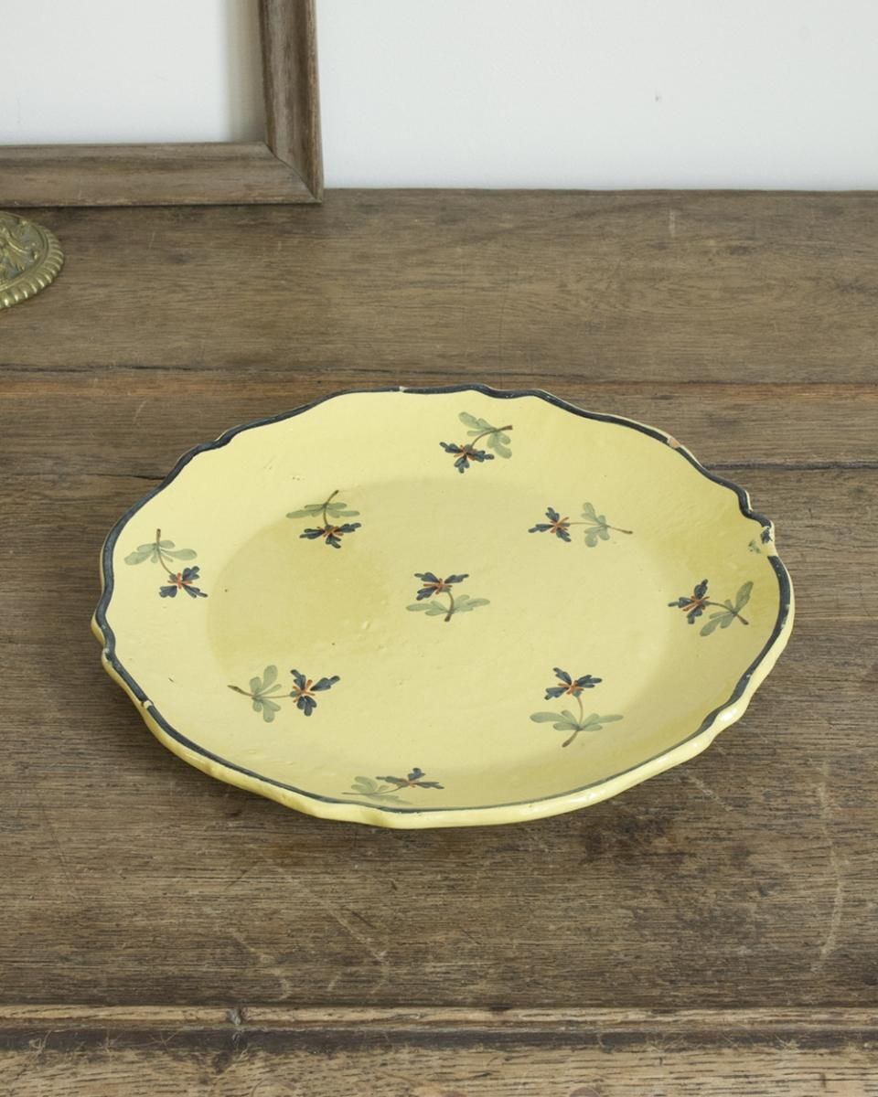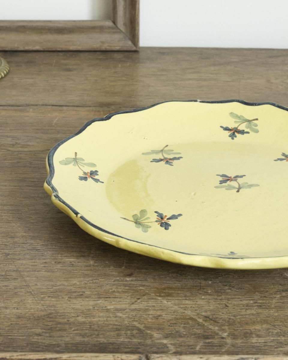 From : France フランスより届いた セラミックプレートのご紹介 セラミック素材ならではの心地よい肌触りと 愛らしい花模様が非常にバランスの良い逸品。 目を惹く鮮やかなイエローの色彩が美しく 食卓を華やかに彩り、テーブルアクセサリ に効果的です。 商品はアンティーク品のため、お写真では伝わり 難い色褪せや小傷などがございます。 追加のお写真をご希望の方はお気軽にお問合せくださいませ。