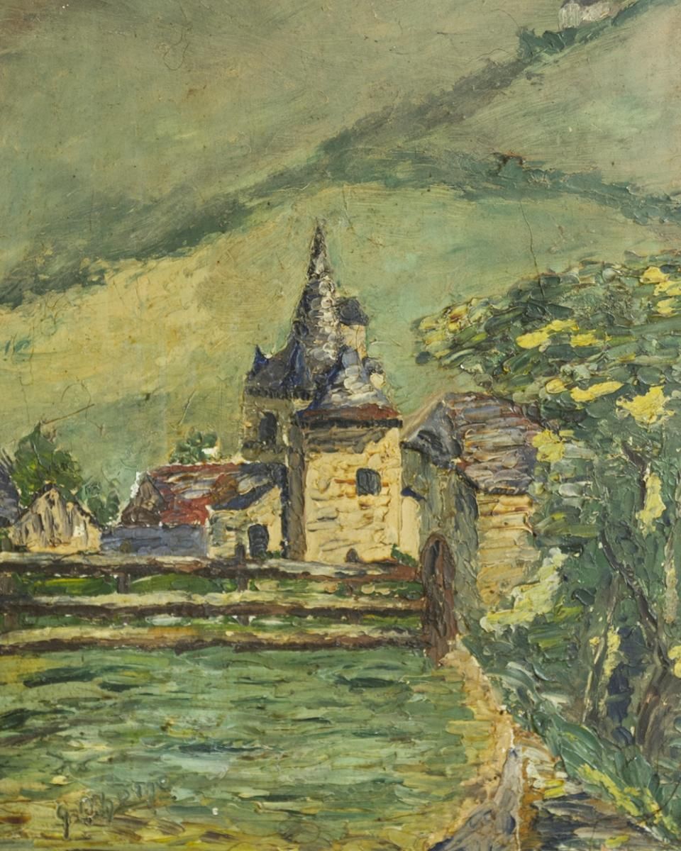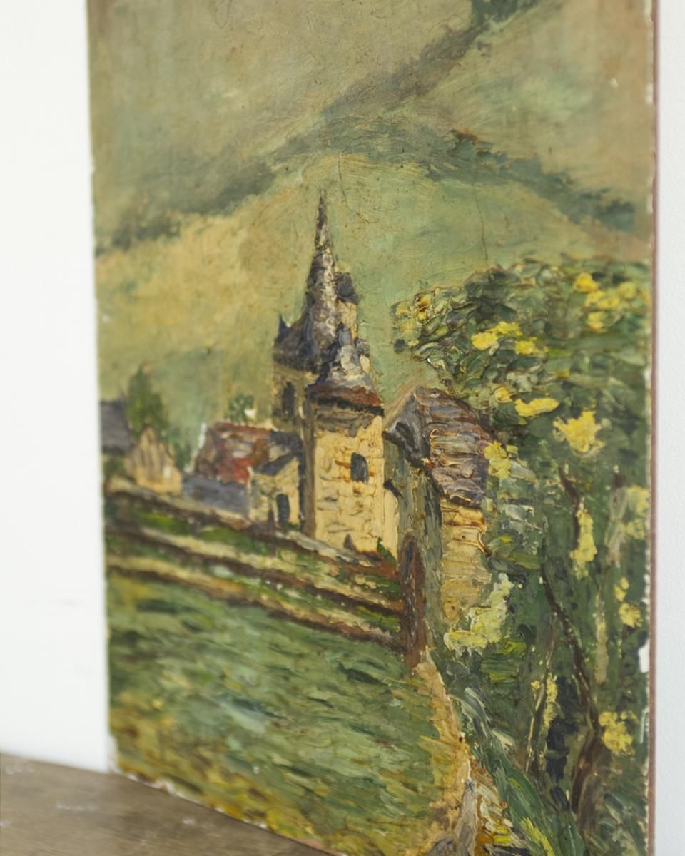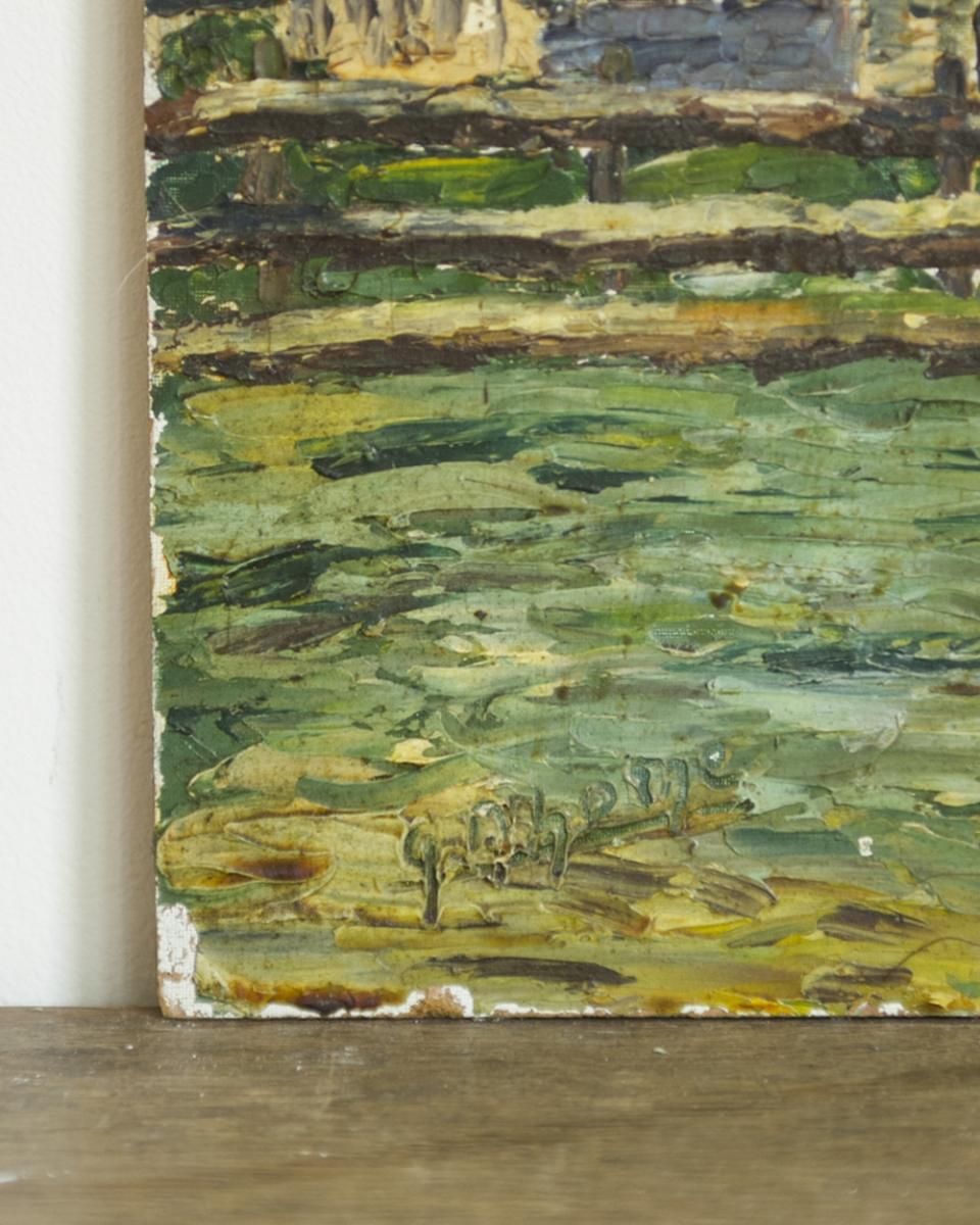 From : France 鮮やかな色で描かれた油絵の風景画 額装もなく、大きすぎないサイズながらも 大胆なタッチで描かれた油絵特有の 立体感のある作品に目を奪われます。 キャンバスにはコルクのような素材(grain)が 使用されております。 商品はアンティーク品のため、お写真では伝わり難い 色褪せや小傷などがございます。 追加のお写真をご希望の方はお気軽にお問合せくださいませ。