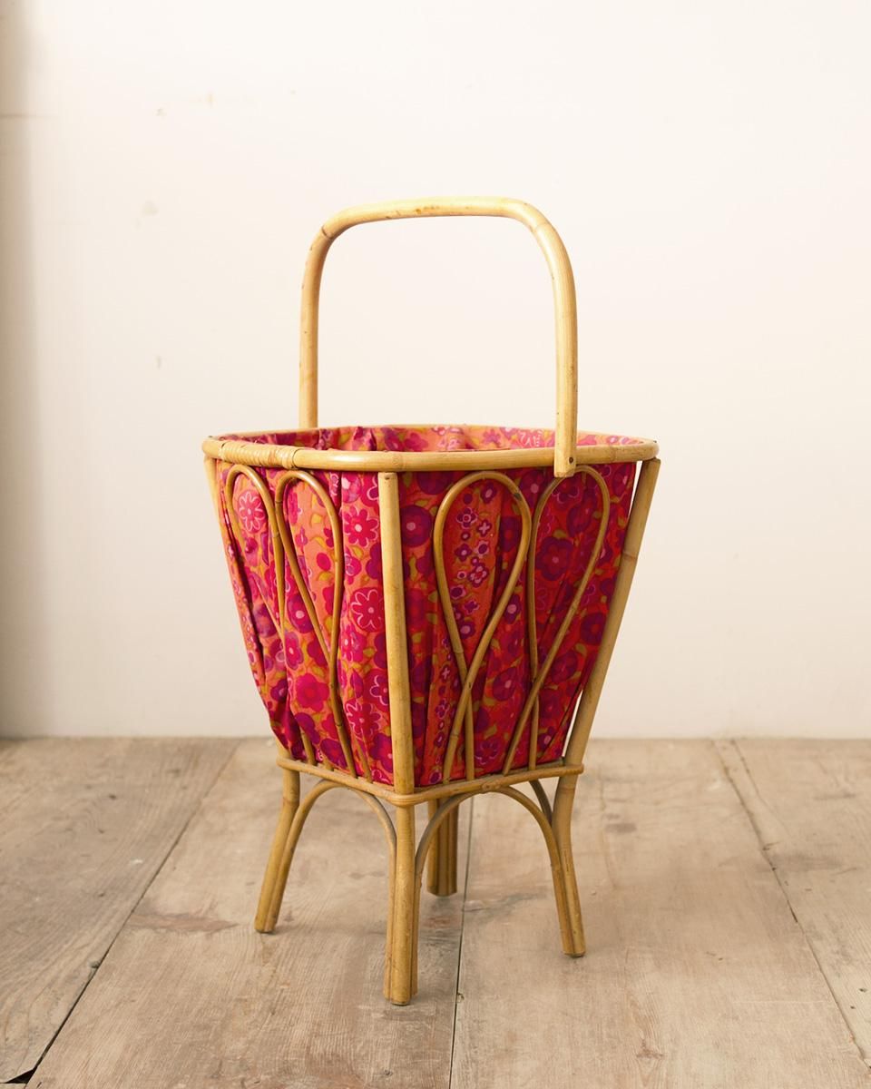 From : France レトロな雰囲気が可愛らしく魅力的なバスケットです。 ラタンのフレームに鮮やかなカラーの花柄のファブリックが レトロな雰囲気でどこか懐かしく感じさせてくれます。 布のカバーが付いているので、見せたくない細々したものを 収納する収納雑貨としても優れており 脚もついているので床にそのまま置いて インテリアのディスプレイとしても目を惹きます。 収納部分の底サイズ:18cm × 18cm 収納部分開口サイズ:30cm × 30cm