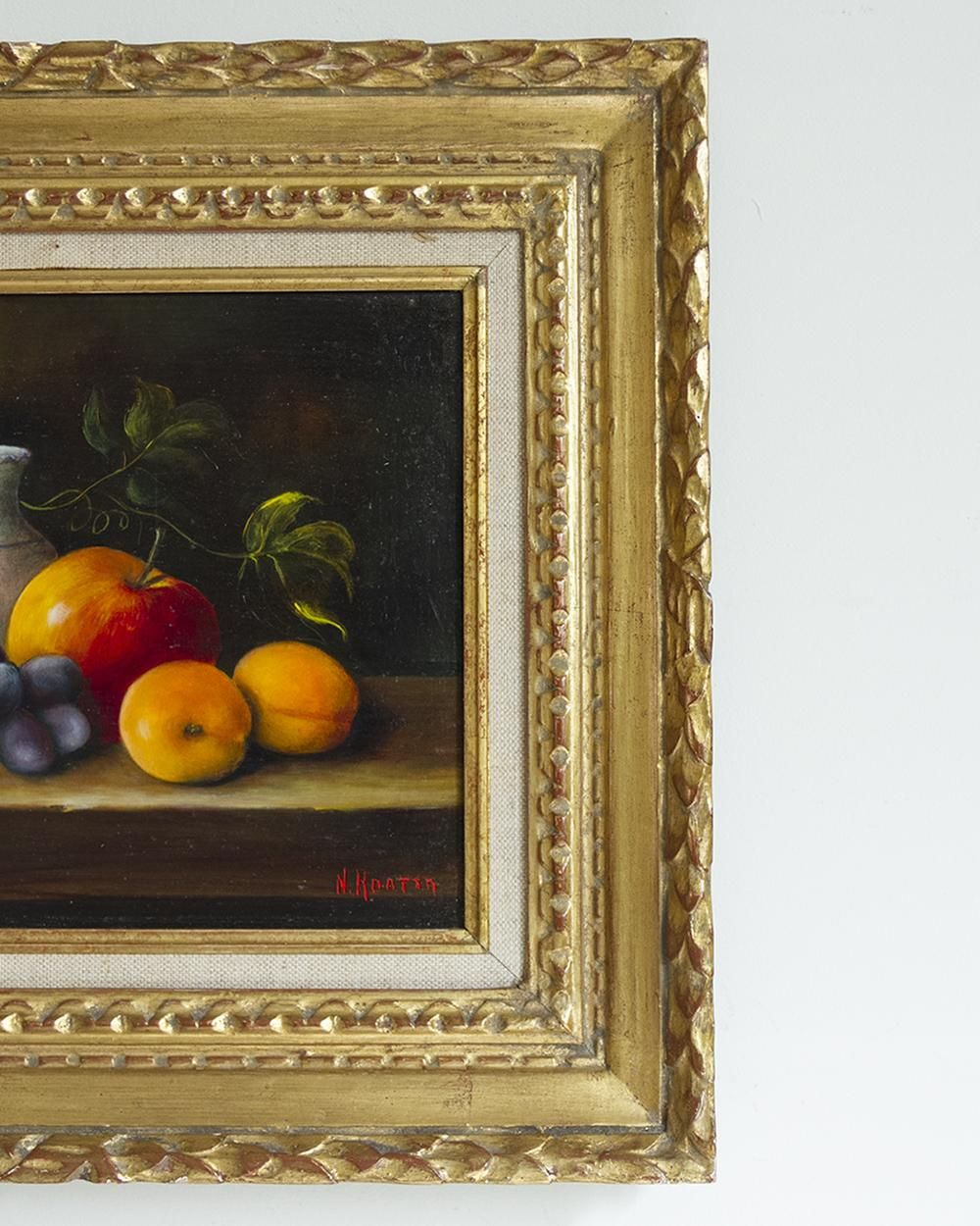 収められた色鮮やかな色彩の果物が印象的な作品。