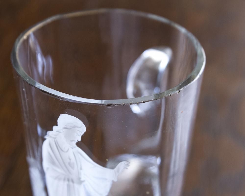 From : France エナメル彩で描かれたジプシーが目を惹く アンティークグラスです。 底面裏にはボヘミア人やボヘミア出身のジプシーを挿す "Boheme"の文字が彫られております。 アンティークガラス特有のガラスの揺らめきや気泡が 魅力的で、ぽってりとした取っ手が可愛らしい 印象をも感じさせてくれます。 商品はアンティーク品のため気泡や使用感 くすみや小傷がある場合がございます。 予めご了承くださいませ。