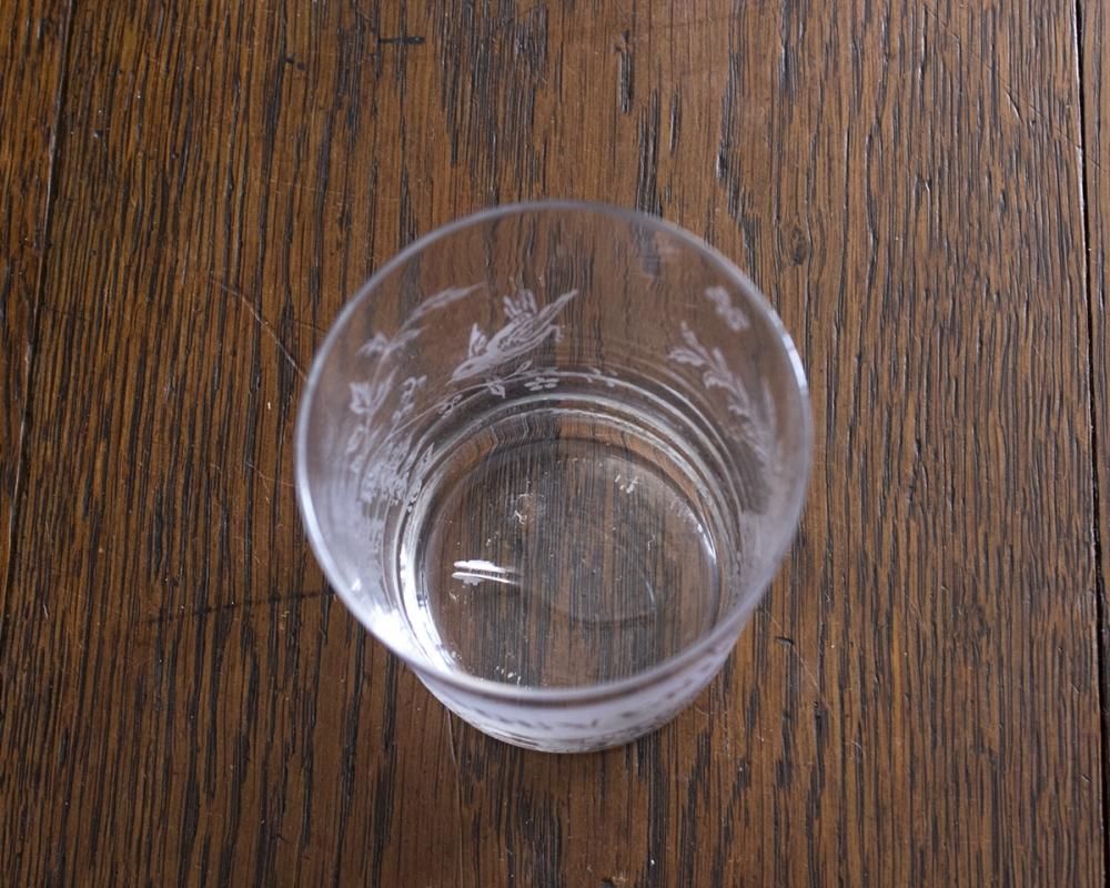 寄ってきた鳥のデザインとても可愛らしいグラスです。