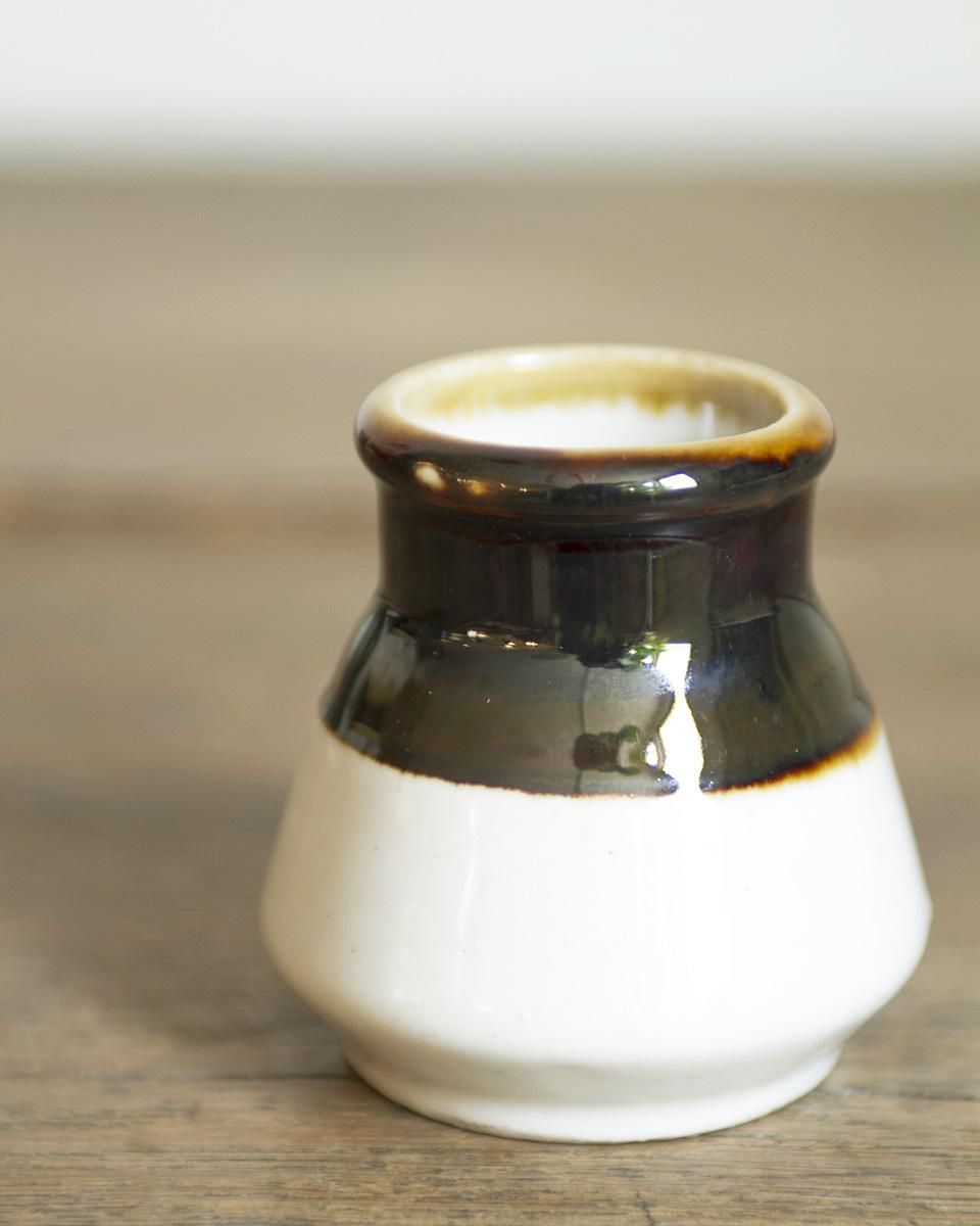 From : France シンプルなデザインに小さくてコロンとしたシルエットが 可愛らしいヴィンテージの陶器の壺です 陶器特有のしっとりとした艶に 2トーンカラーが魅力的で小さいながらにも存在感があります。 状態も大変よく、和のテイストとも相性よく飾っていただけます。 そのままディスプレイするのも、お花を挿して花瓶としてお使いいただくのも インテリアのアクセントになるアイテムです。
