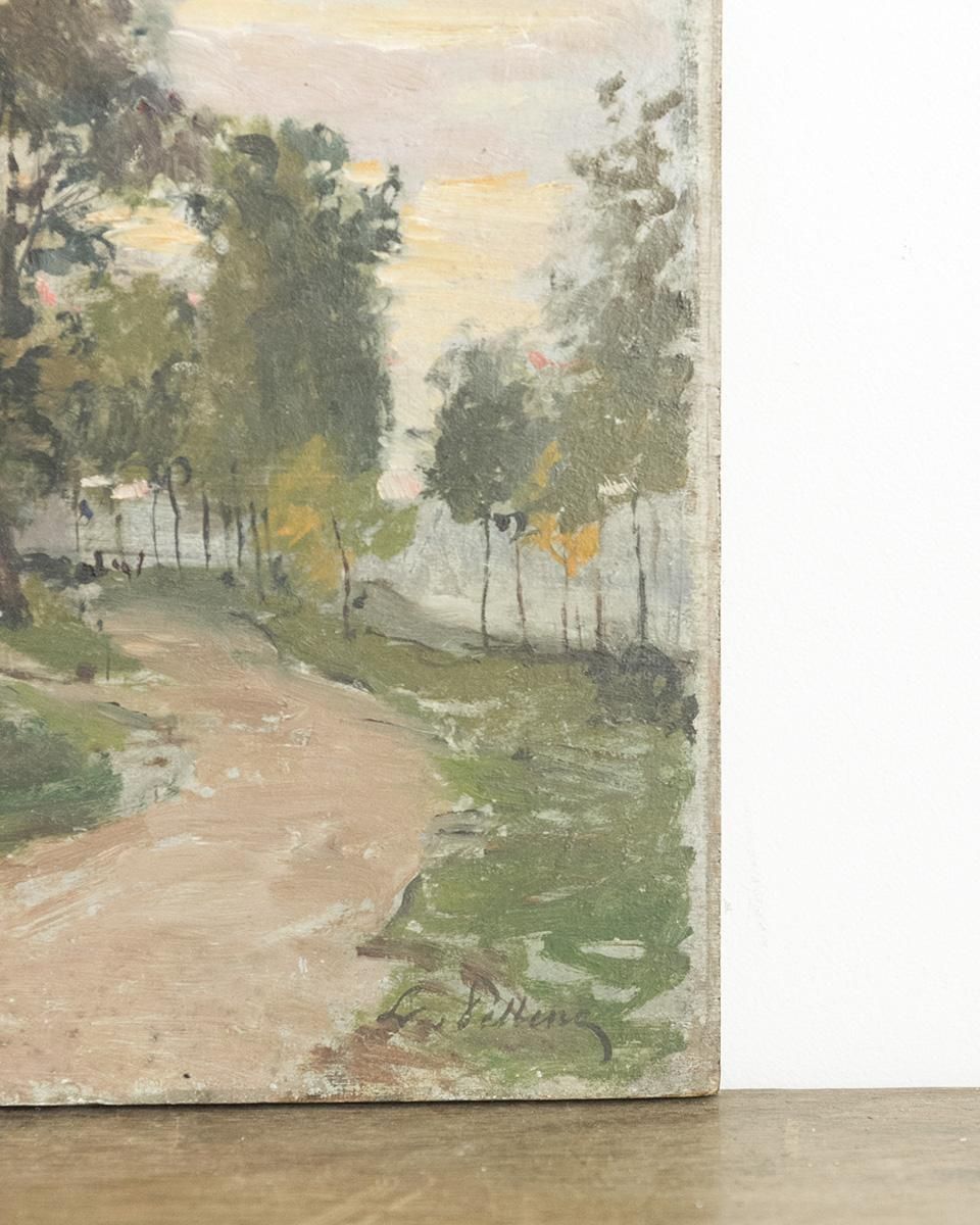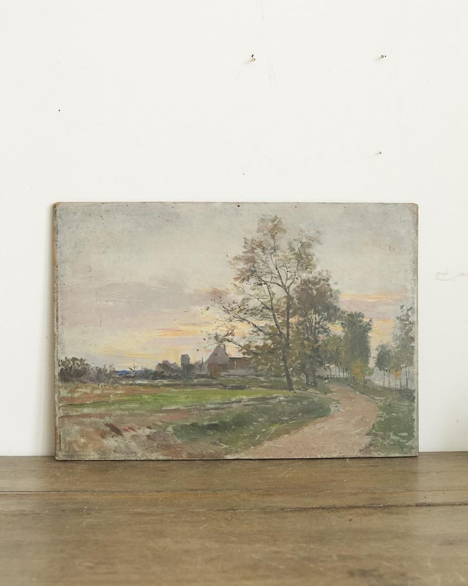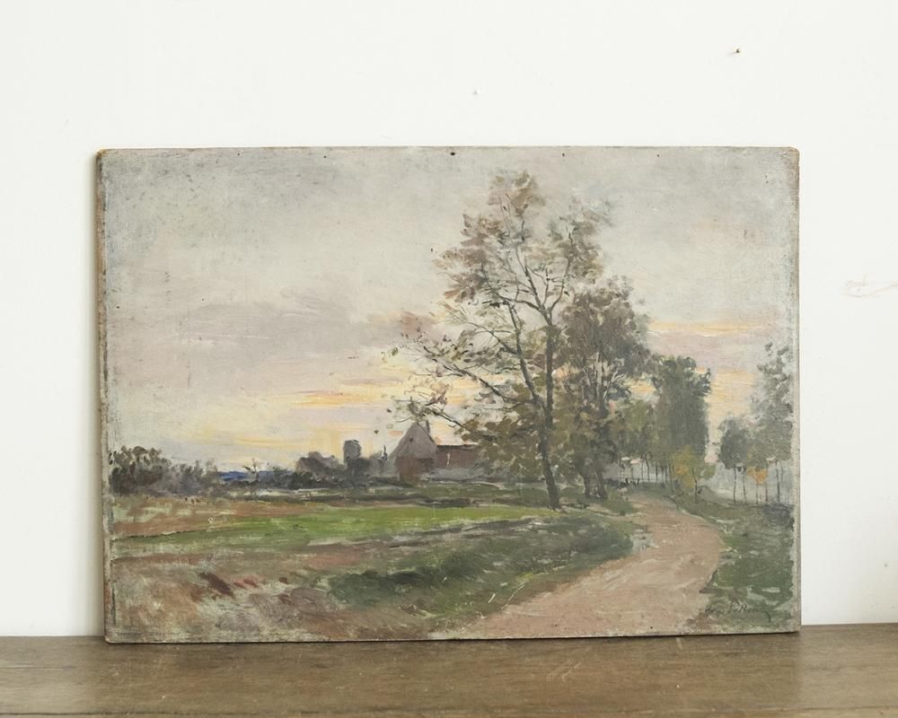 From : France 村の様子を描いた風景画の油絵画です。 落ち着いたトーンで描かれた風景画で 夕日が沈むオレンジ色の空模様や木々たちが どこか秋の寂しい雰囲気を漂わせています。 印刷ではなく、実際に描かれた作品となっており 質感や色合いなど油絵画ならではの立体感が 魅力的なアート作品です。 商品はアンティーク品のため、お写真では伝わり難い 色褪せや小傷などがございます。 追加のお写真をご希望の方はお気軽にお問合せくださいませ。