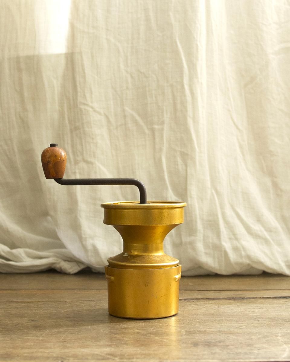 ゴールドの輝きが目を惹くヴィンテージのコーヒーミルです。