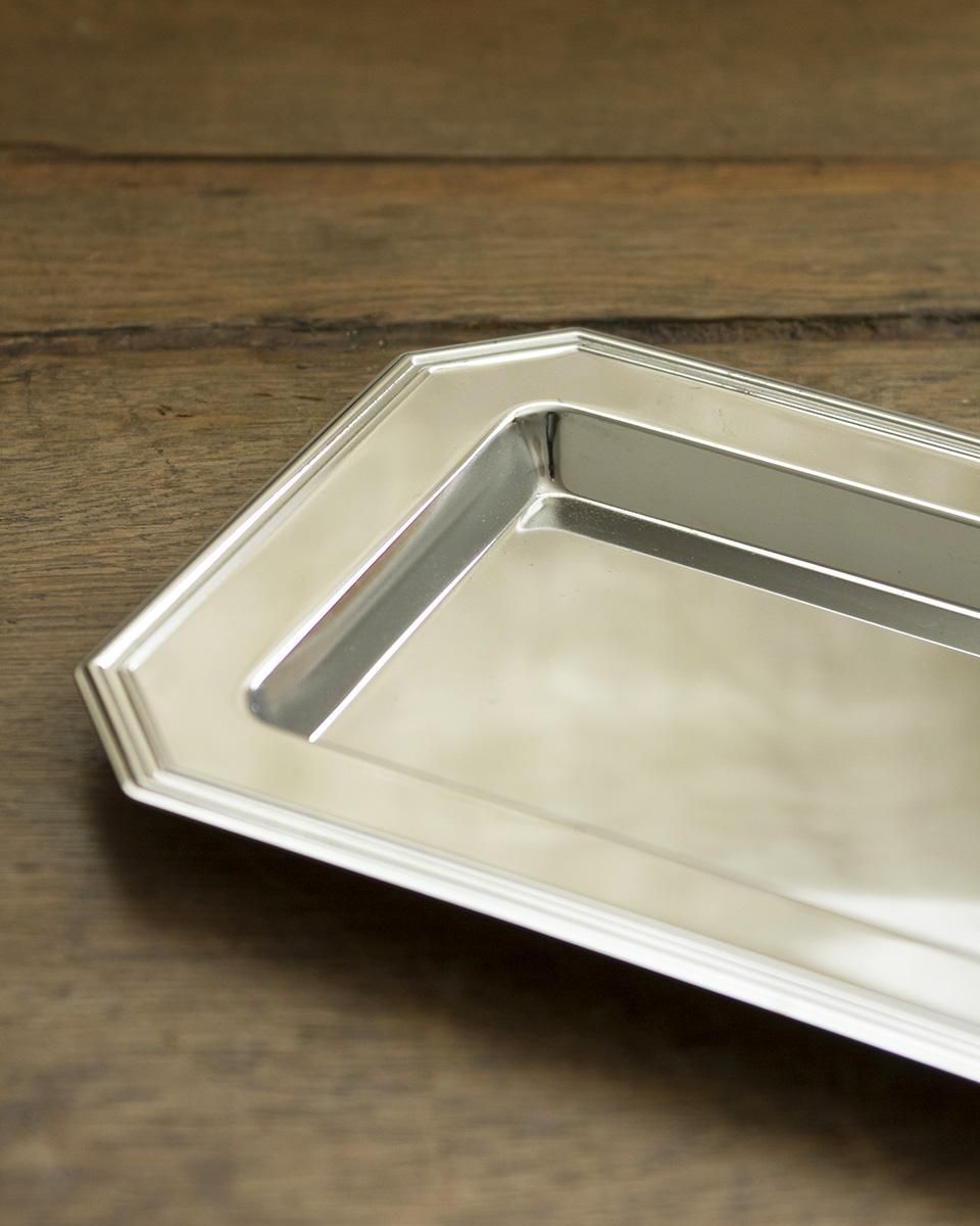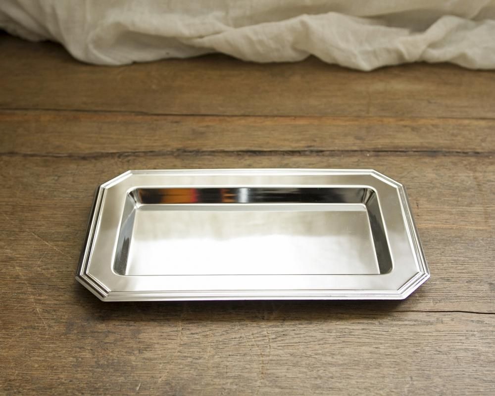 From : France オーバル型に8角形のリムがついたシルバートレイです。 シンプルながらも美しいフォルムはどんなインテリアとも 相性よくマッチしてくれ、雑貨や小物 アクセサリーやお花などを飾るディスプレイ アイテムとしてもお勧めです。 商品はアンティーク品のため、お写真では伝わり 難い色褪せや小傷・凹み箇所などがございます。 追加のお写真をご希望の方はお気軽にお問合せくださいませ。