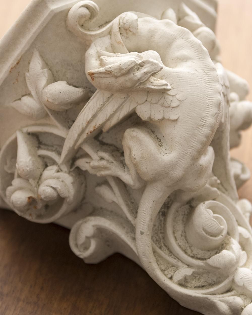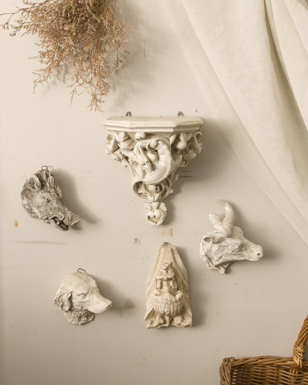 フランスより届いた石像の壁掛けオブジェ。
