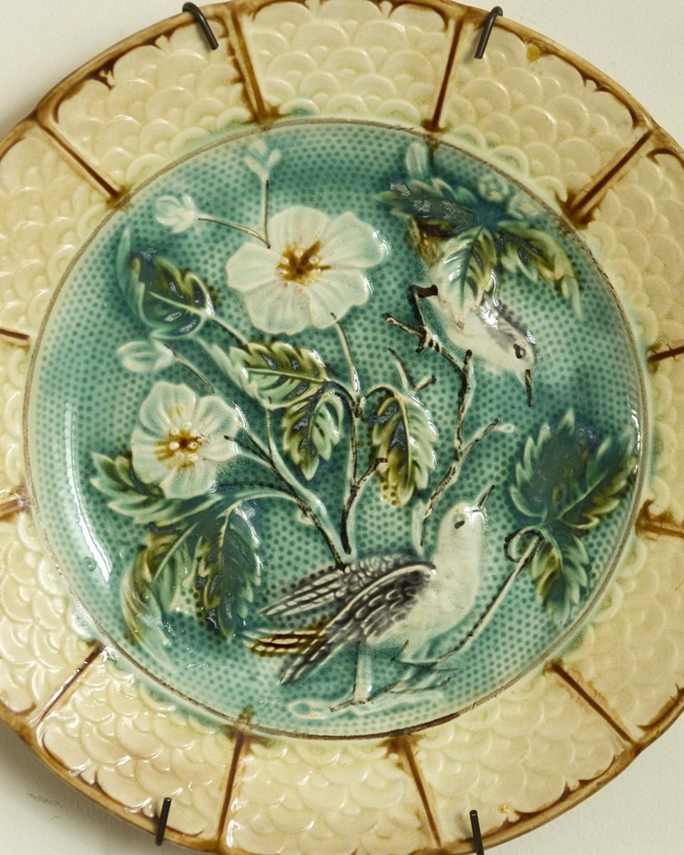 バルボティーヌプレート ”花と鳥”Barbotine Plate ”Bird”