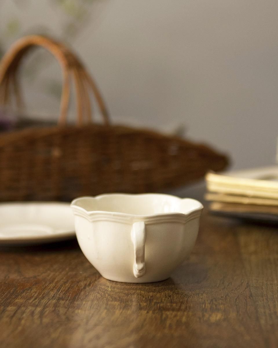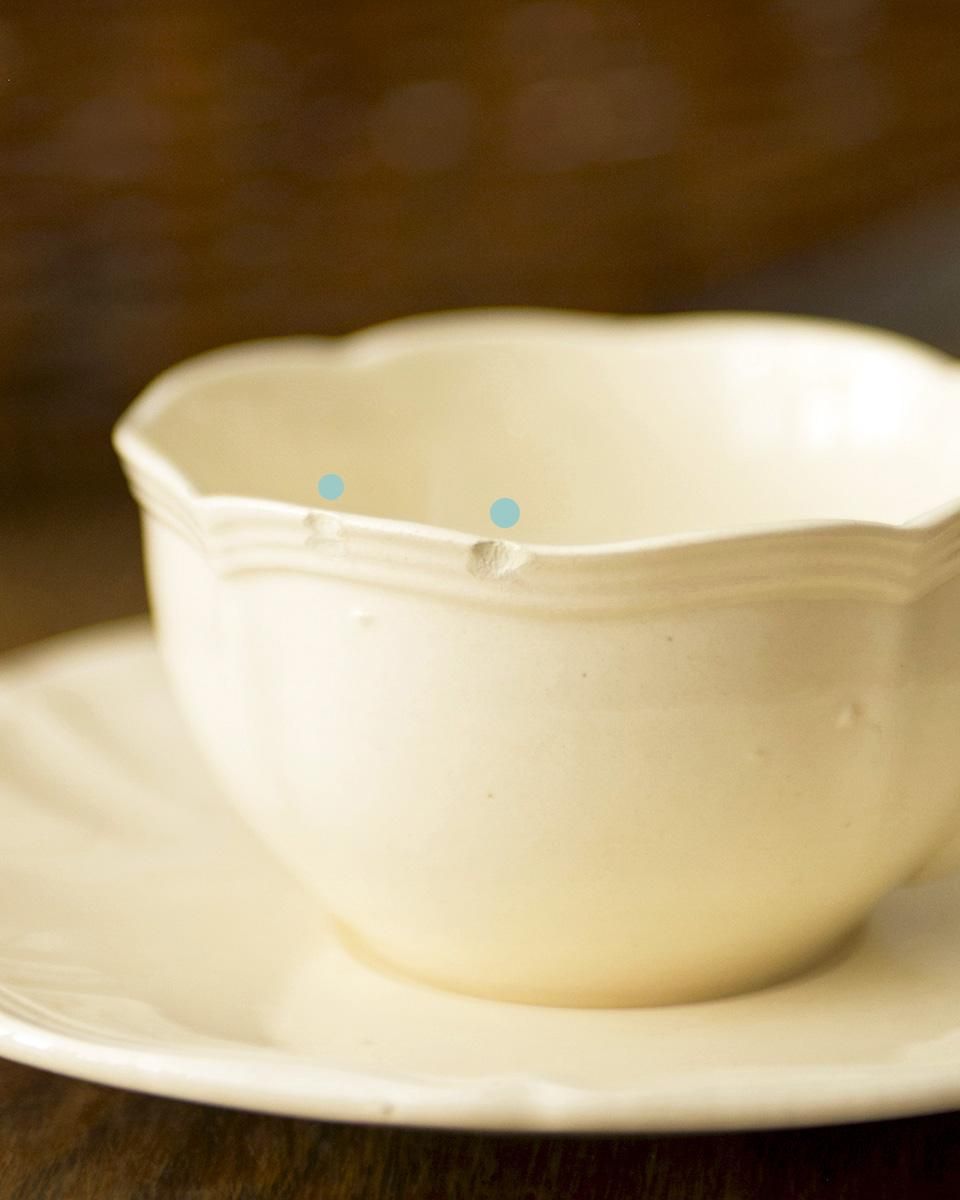 陶器ならではのアイボリーの柔らかく艶のある質感に