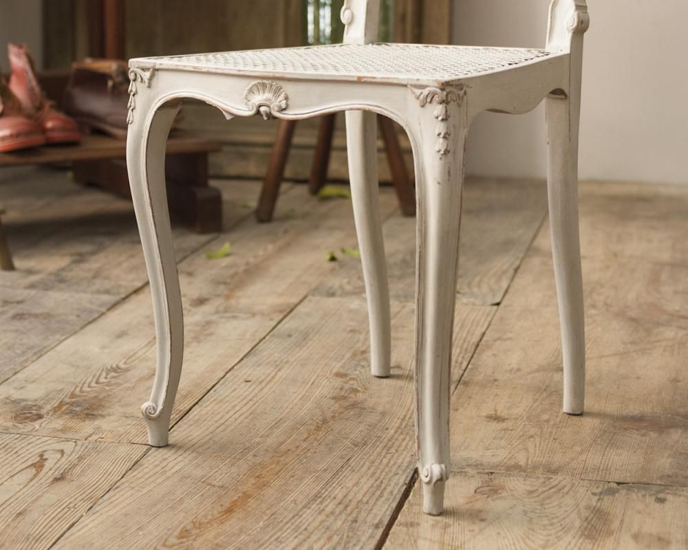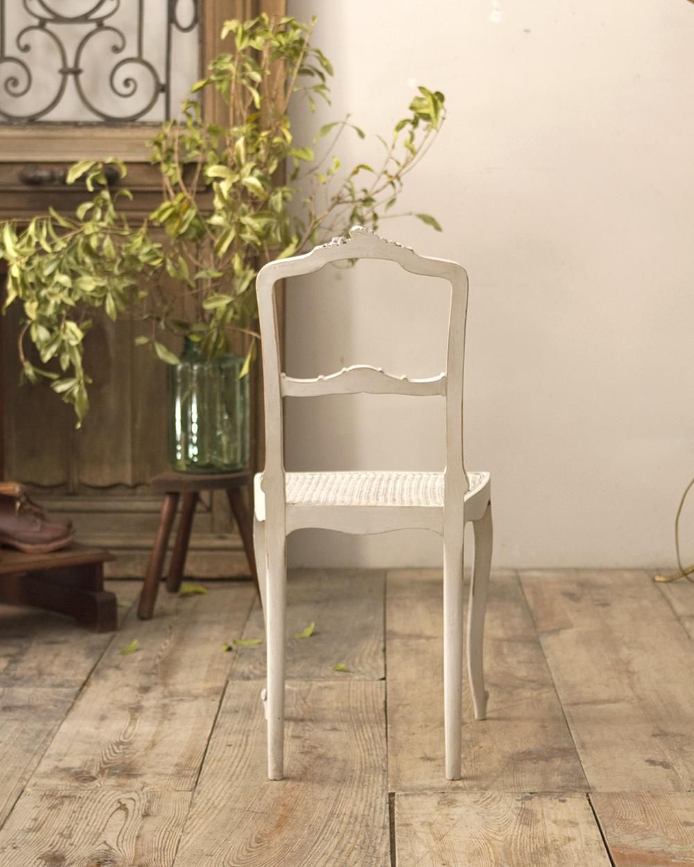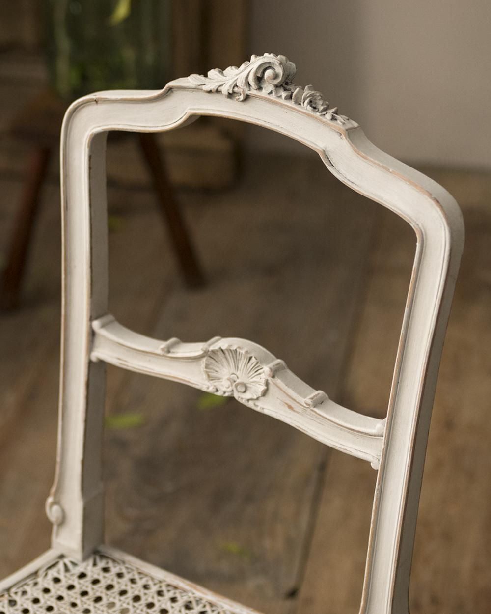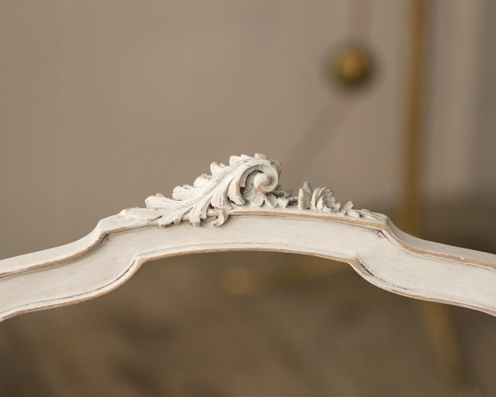 背もたれや脚元に施されたロカイユの彫刻が美しく、