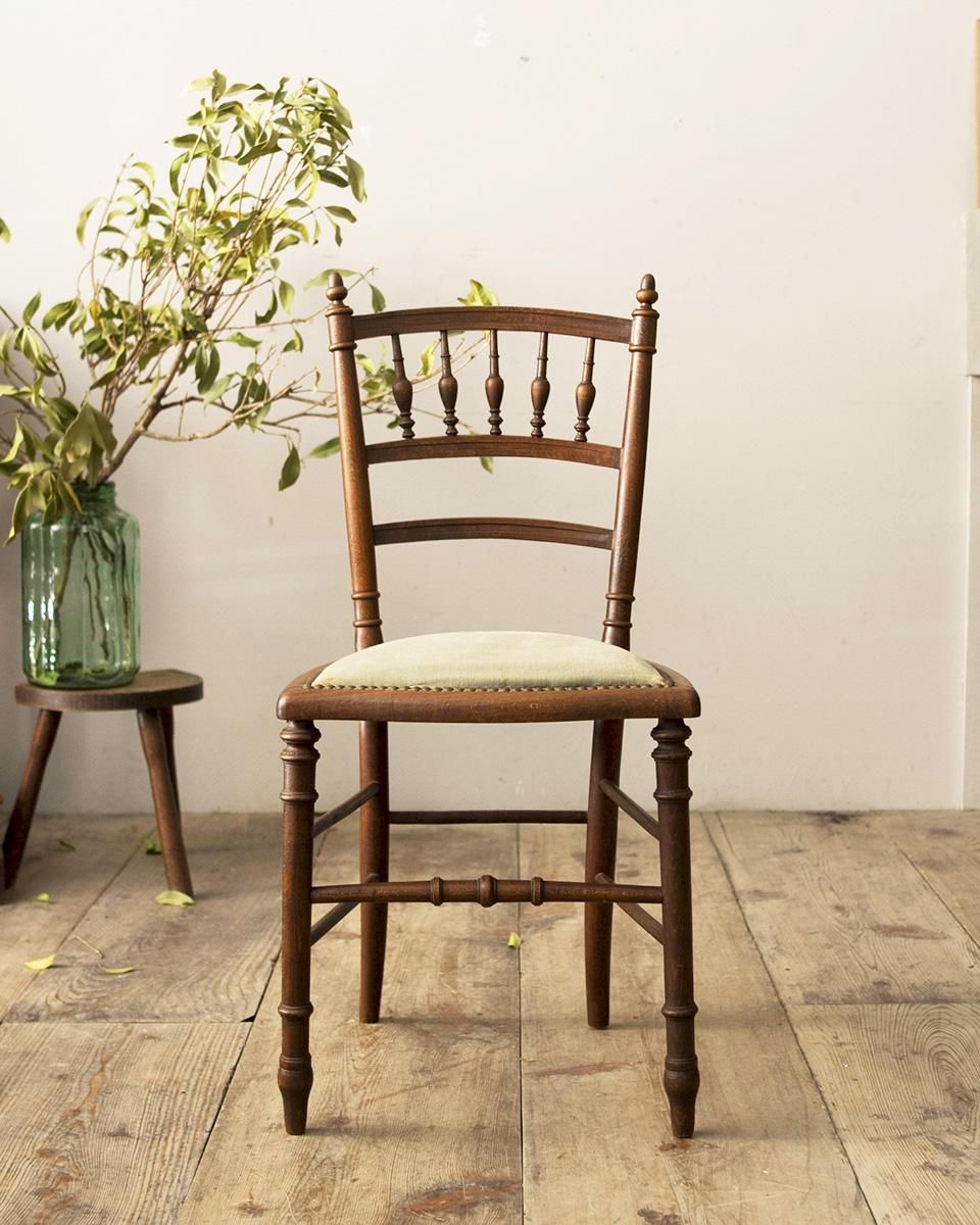 縦ストライプの細身のスピンドル装飾が魅力的な背もたれに