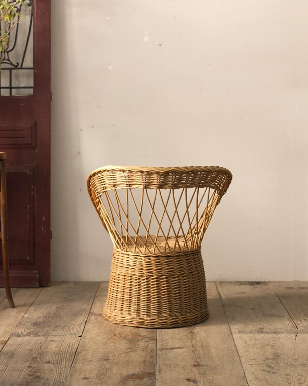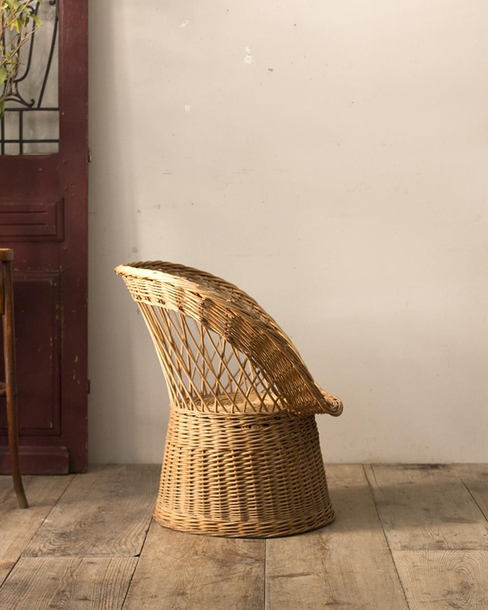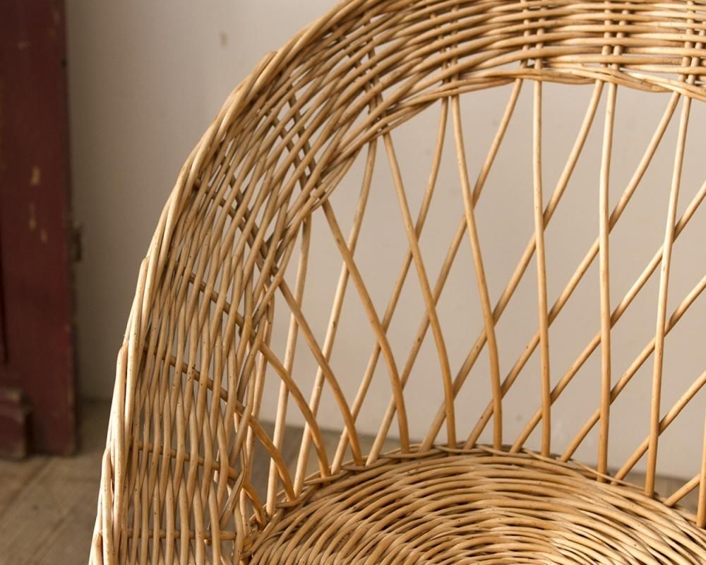 フランスにて買い付けたラタン細工のリビングチェア。
