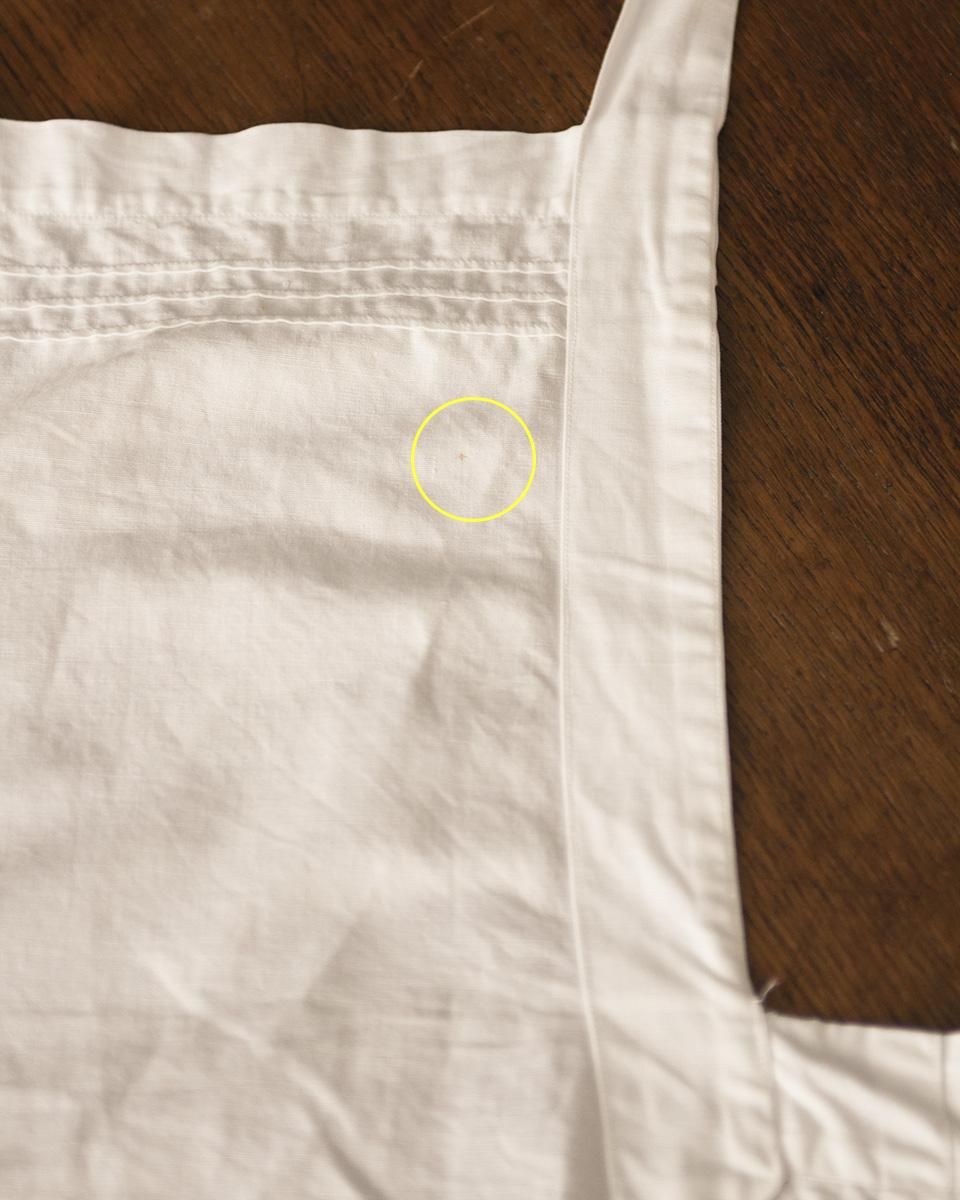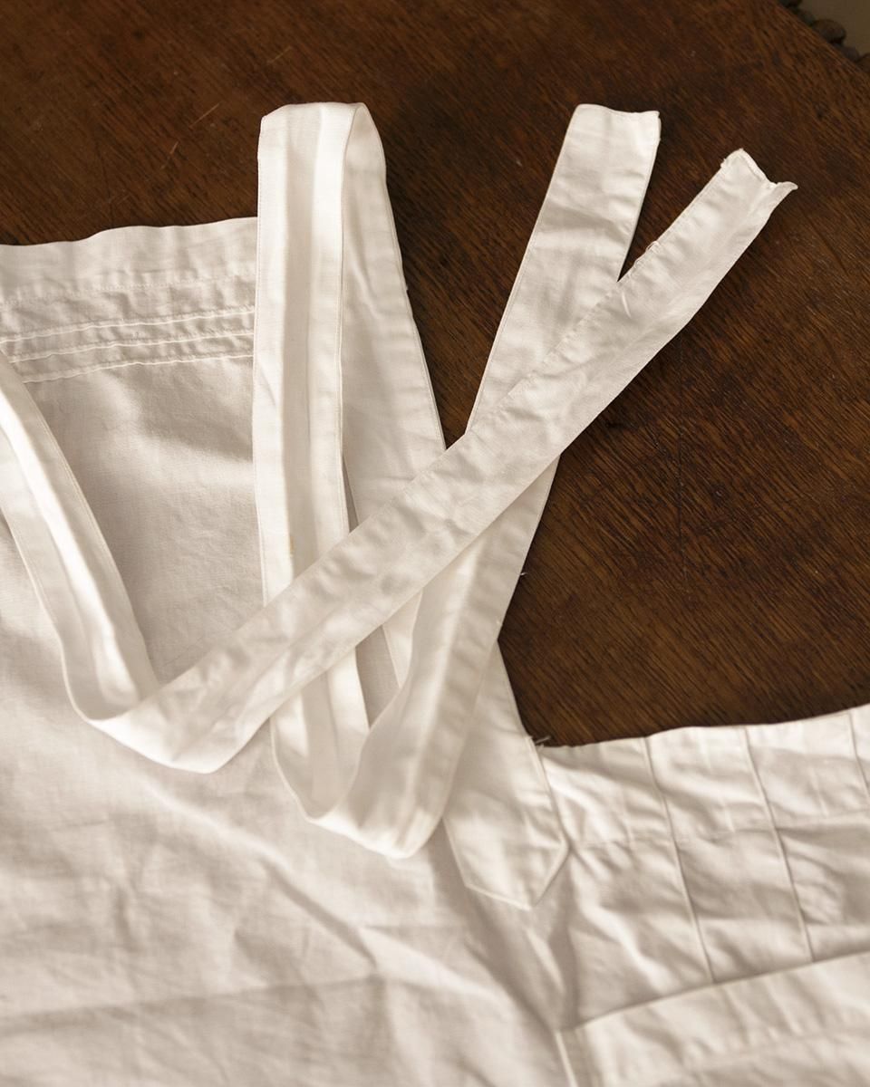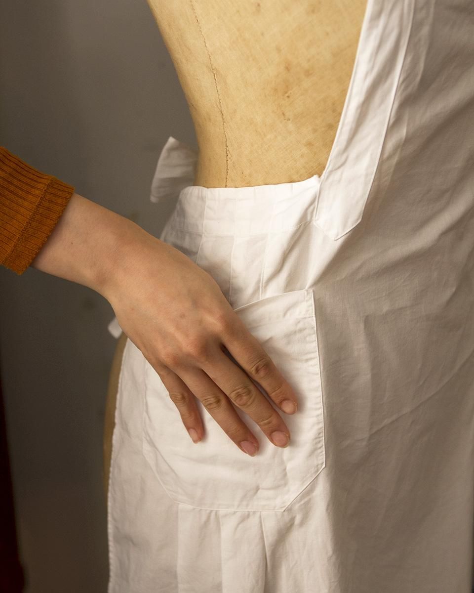 From : France シンプルなデザインながらも上品な 佇まいのエプロンです。 ラインの装飾に両サイドにあるポケットが魅力的で お料理をするときの気分を高めてくれます。 商品はアンティーク品のため、写真ではお伝え難い 汚れや破れ、擦れ箇所などある場合がございます。 恐れ入りますが、予めご了承くださいませ。 追加のお写真をご希望の方はお気軽にお問合せくださいませ。