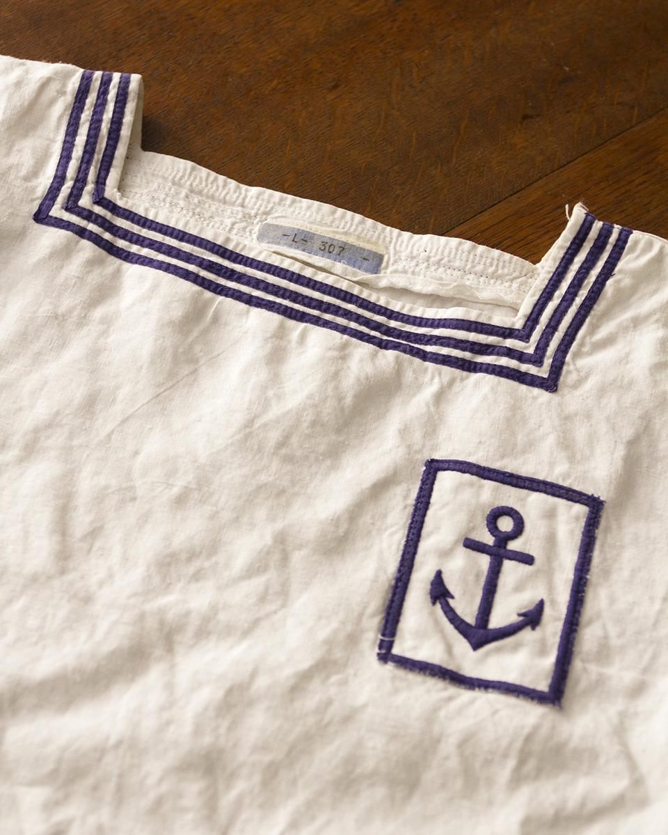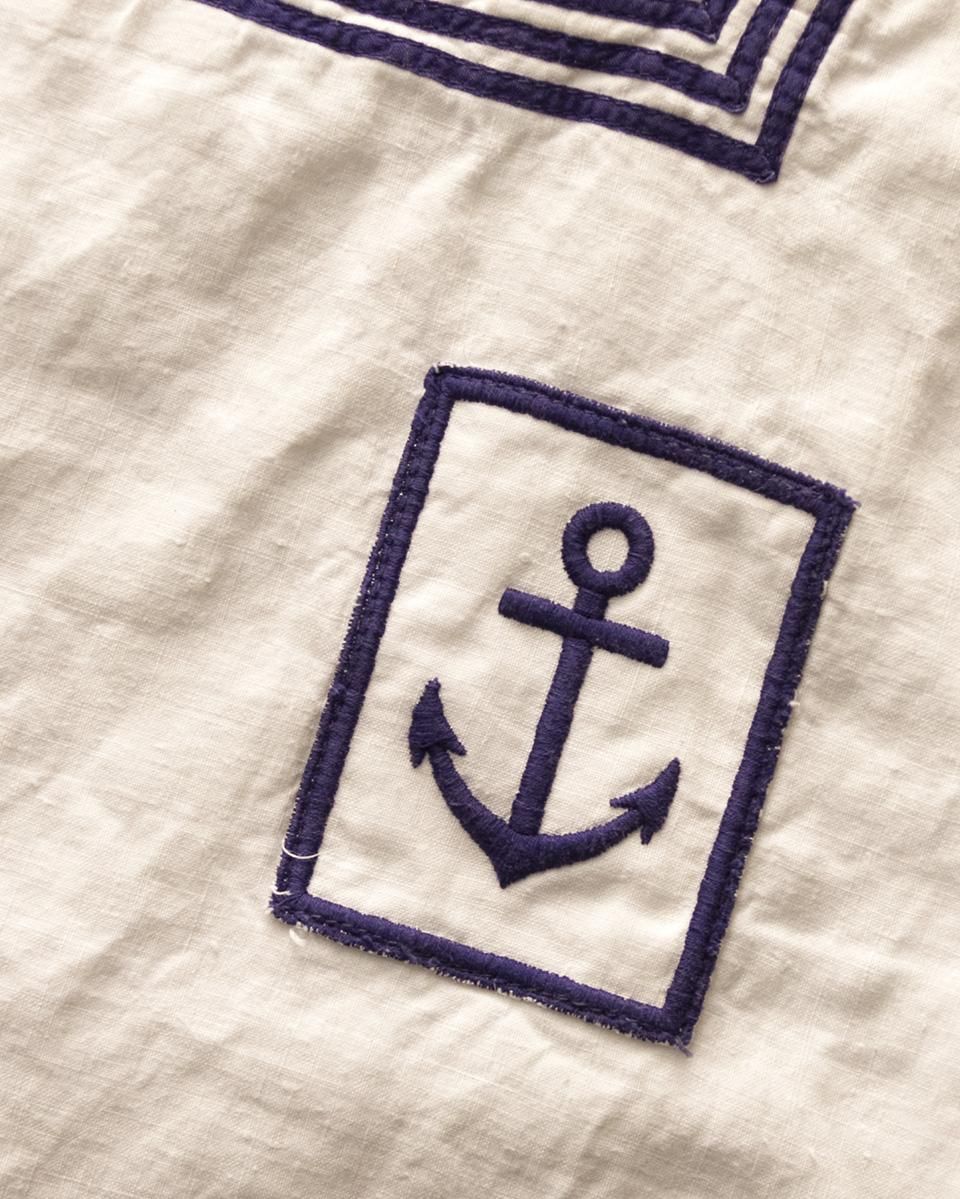 胸元に施されたネイビーカラーの碇の刺繍や