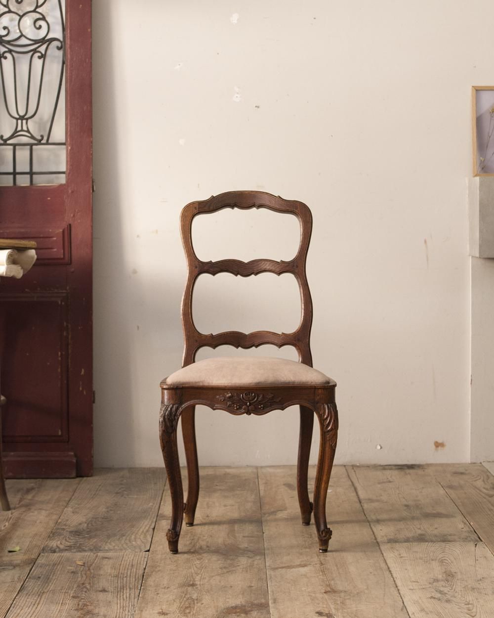 彫刻が印象的で、背もたれ部分のデザインは茎の