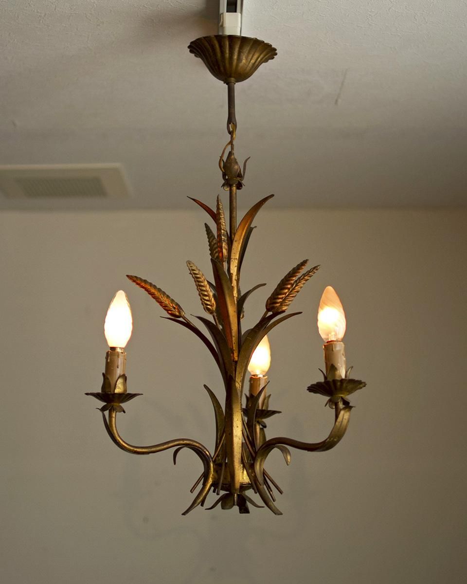 植物をモチーフとした3灯のシャンデリア